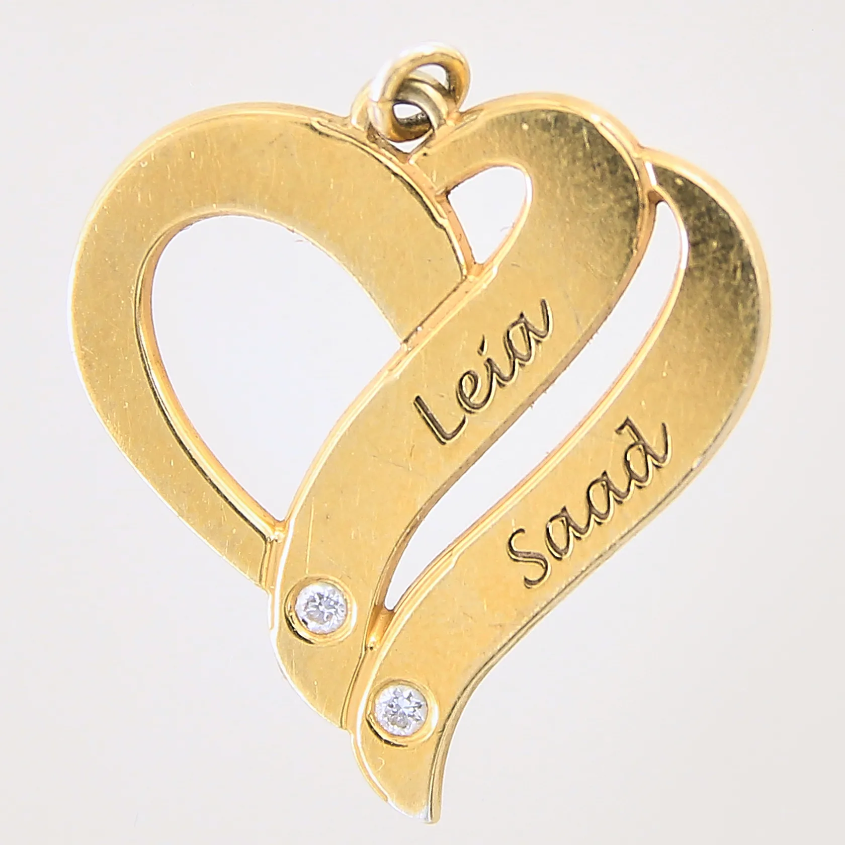 Hänge, hjärta, med diamanter 2 x ca 0,02ct, Ø22mm, gravyr, förgyllt silver 925/1000 Vikt: 2,5 g.