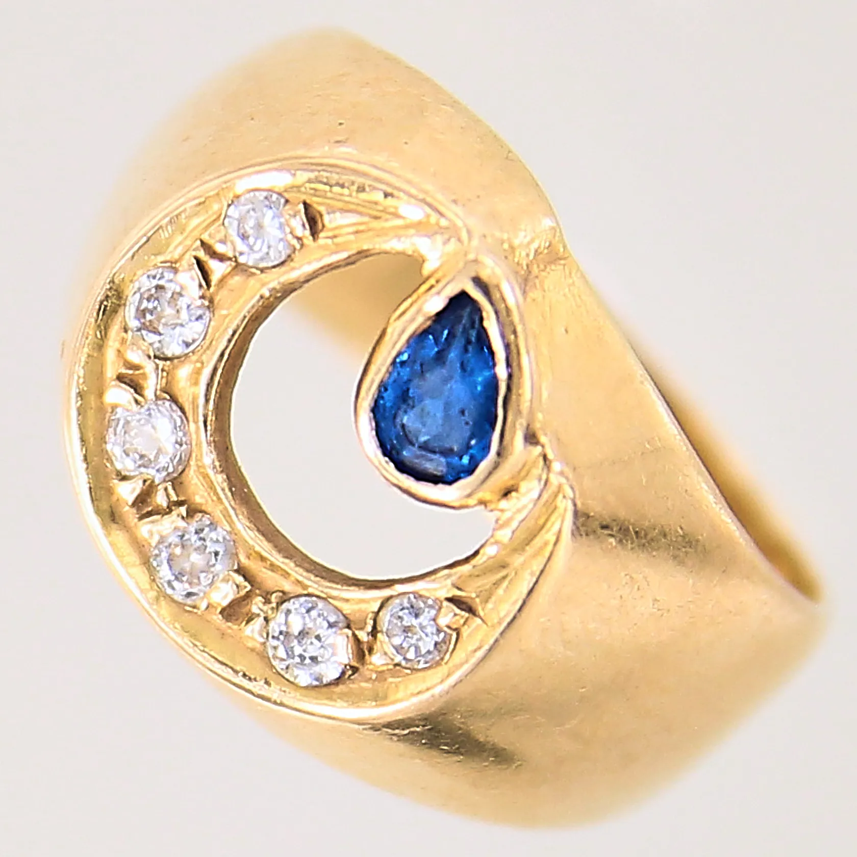 Ring med blå samt vita stenar, stl 16, bredd 5-12,5mm, 18K Vikt: 6 g.