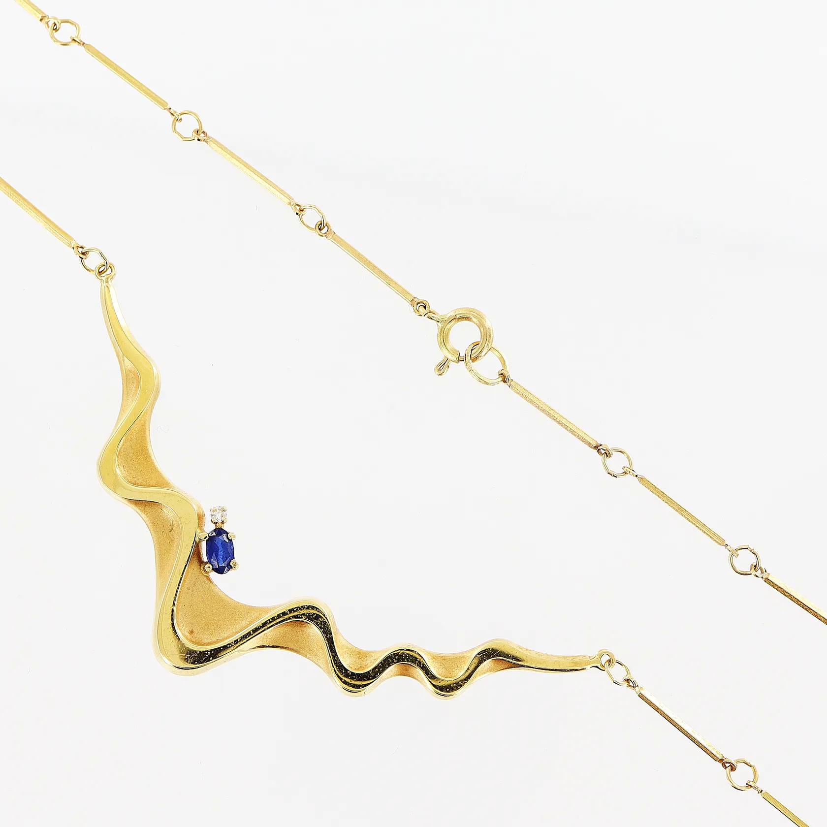 Collier, doserat, diamant ca 0,02ct, safir, 42cm, bredd 1-10mm, 18K Vikt: 7,2 g.