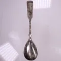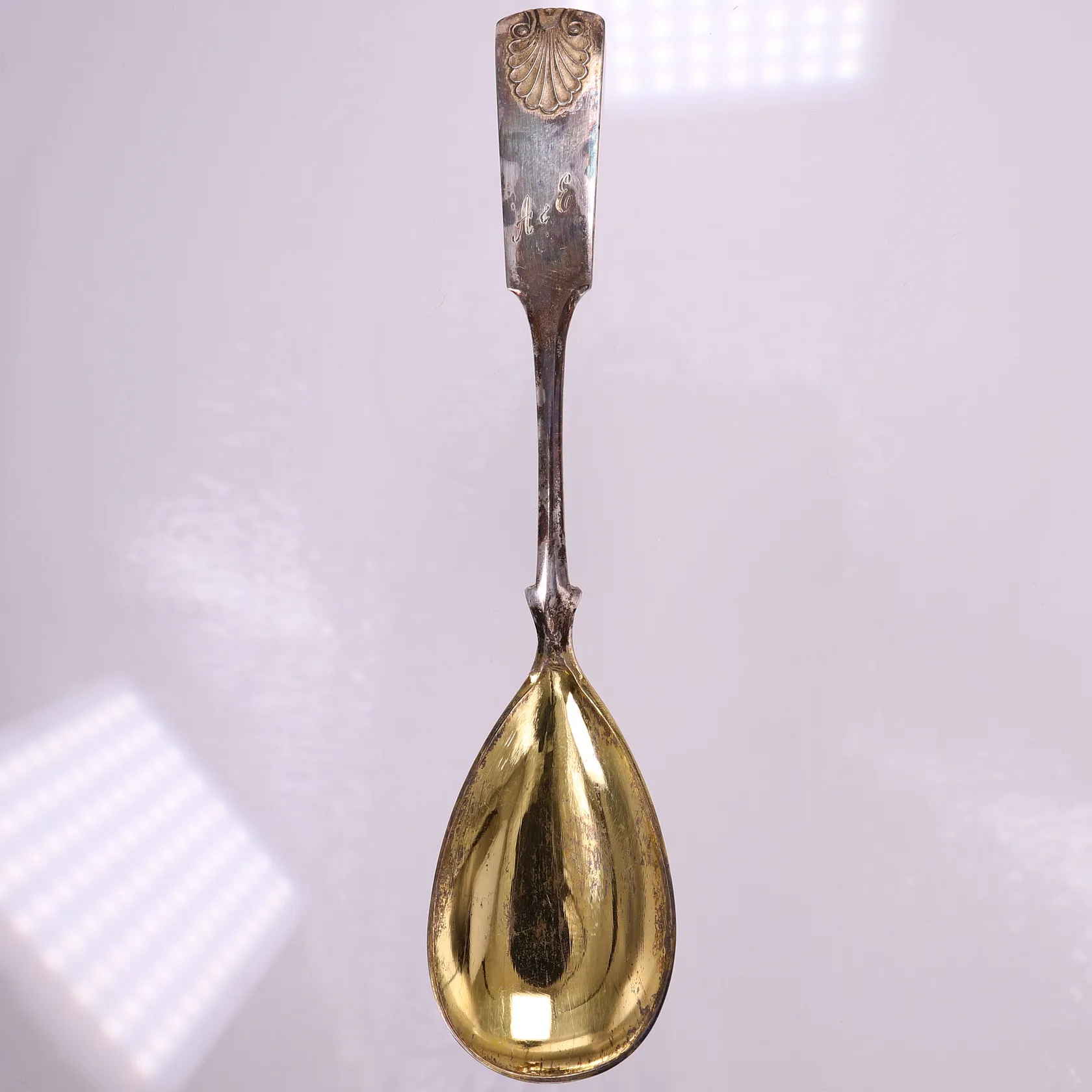 Kompottsked, modell Snäcka, Danmark, längd ca 17,5g, delvis förgylld, gravyr. 813/1000 silver Vikt: 30 g.