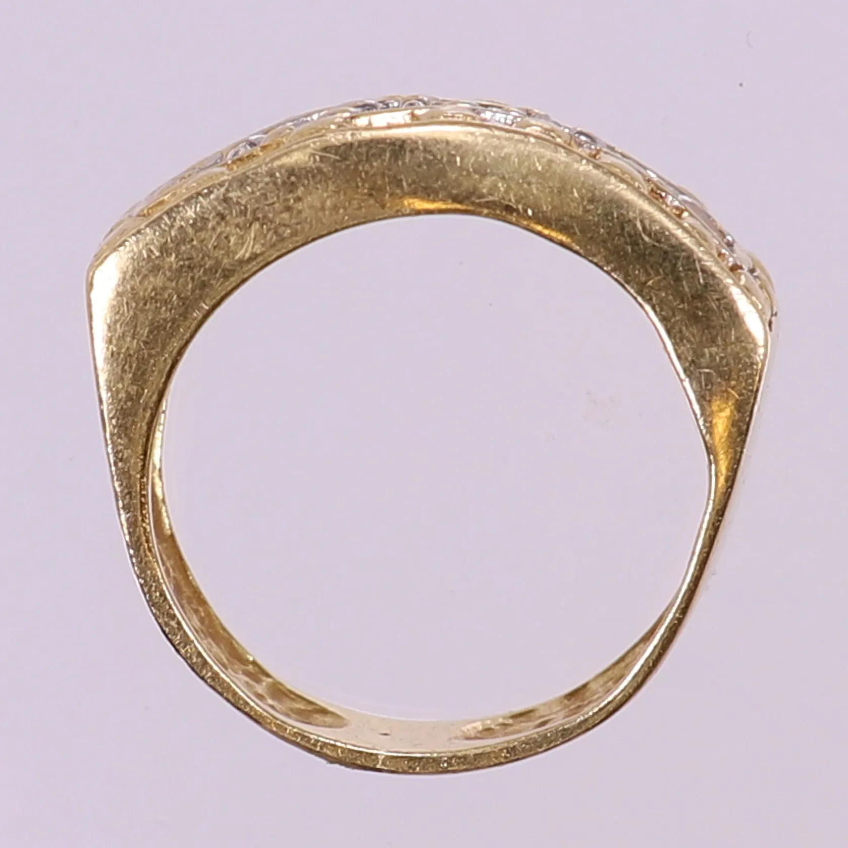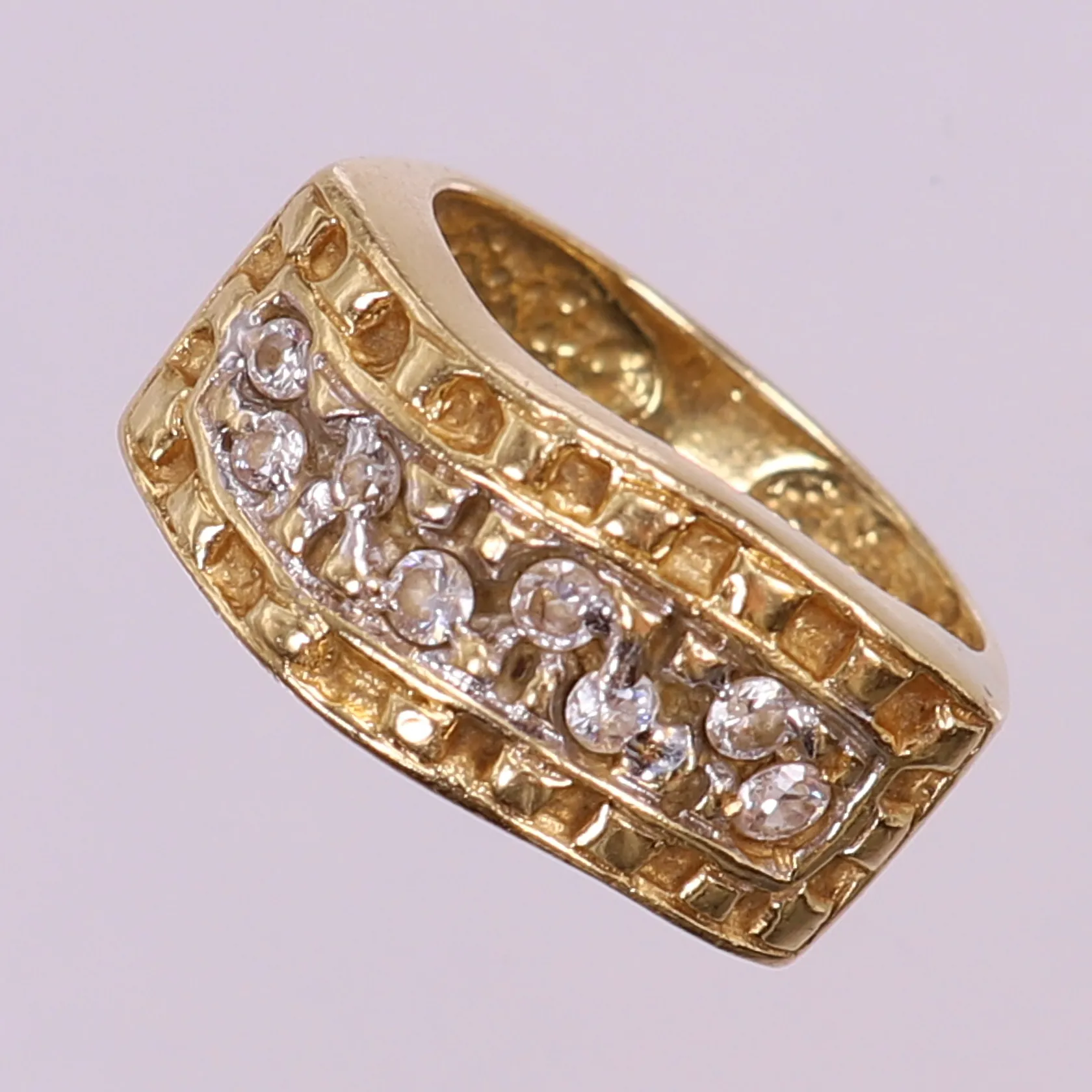 Ring med vita stenar, stl 17¾, bredd 5,5-10,5mm. 18K Vikt: 7,9 g.