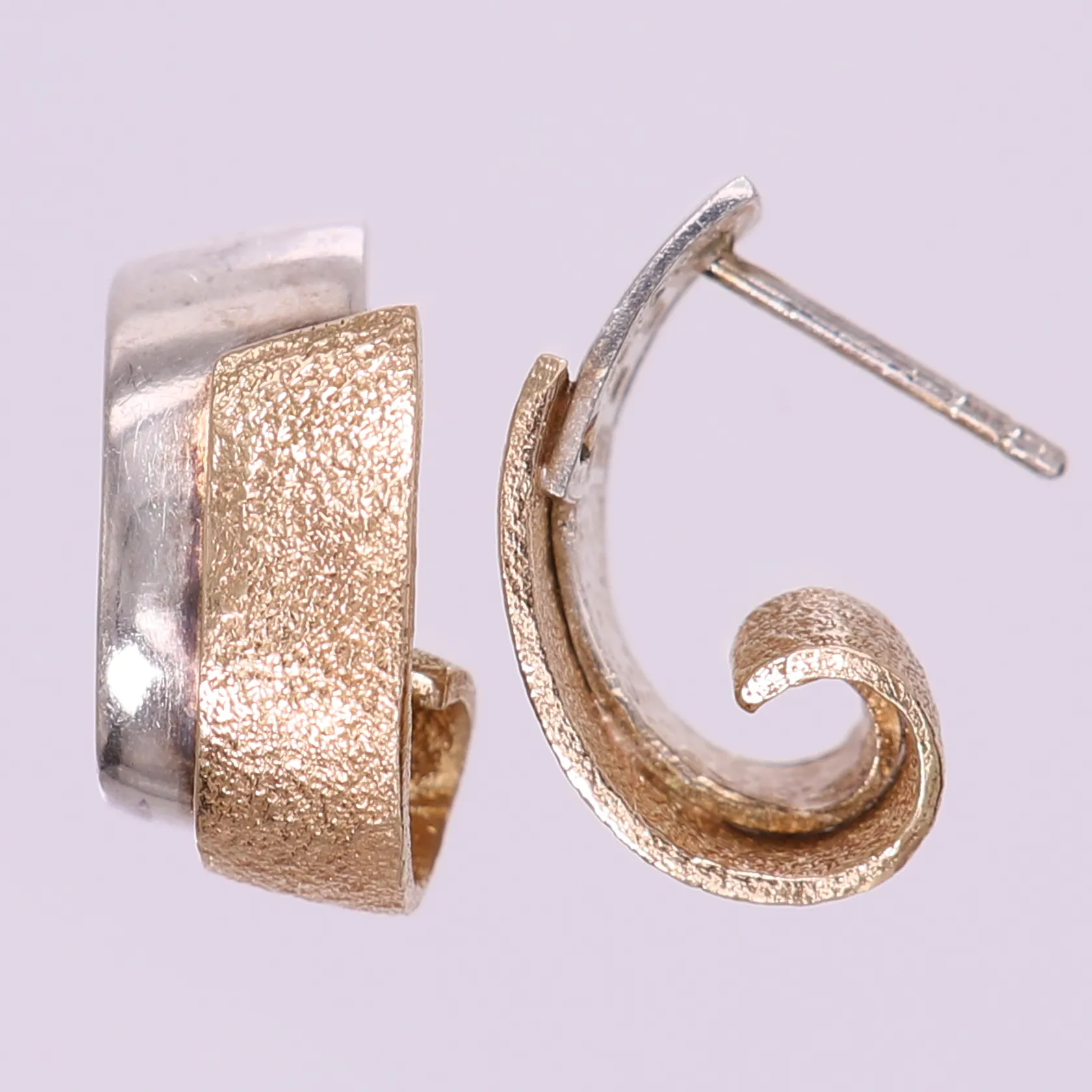 Ett par örhängen med hamrade detaljer i 14K, ca 17x7,5mm, sneda stift, saknar snurrebussar. 925/1000 silver, bruttovikt 4,8g Vikt: 4,8 g.