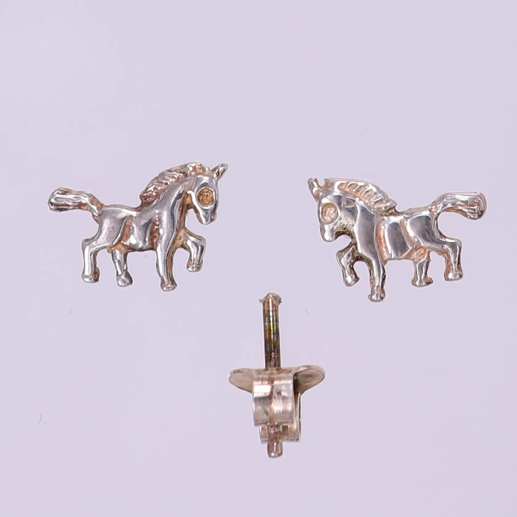 Ett par örhängen med hästar, ca 10x7mm, ett stift av. 925/1000 silver Vikt: 1 g.