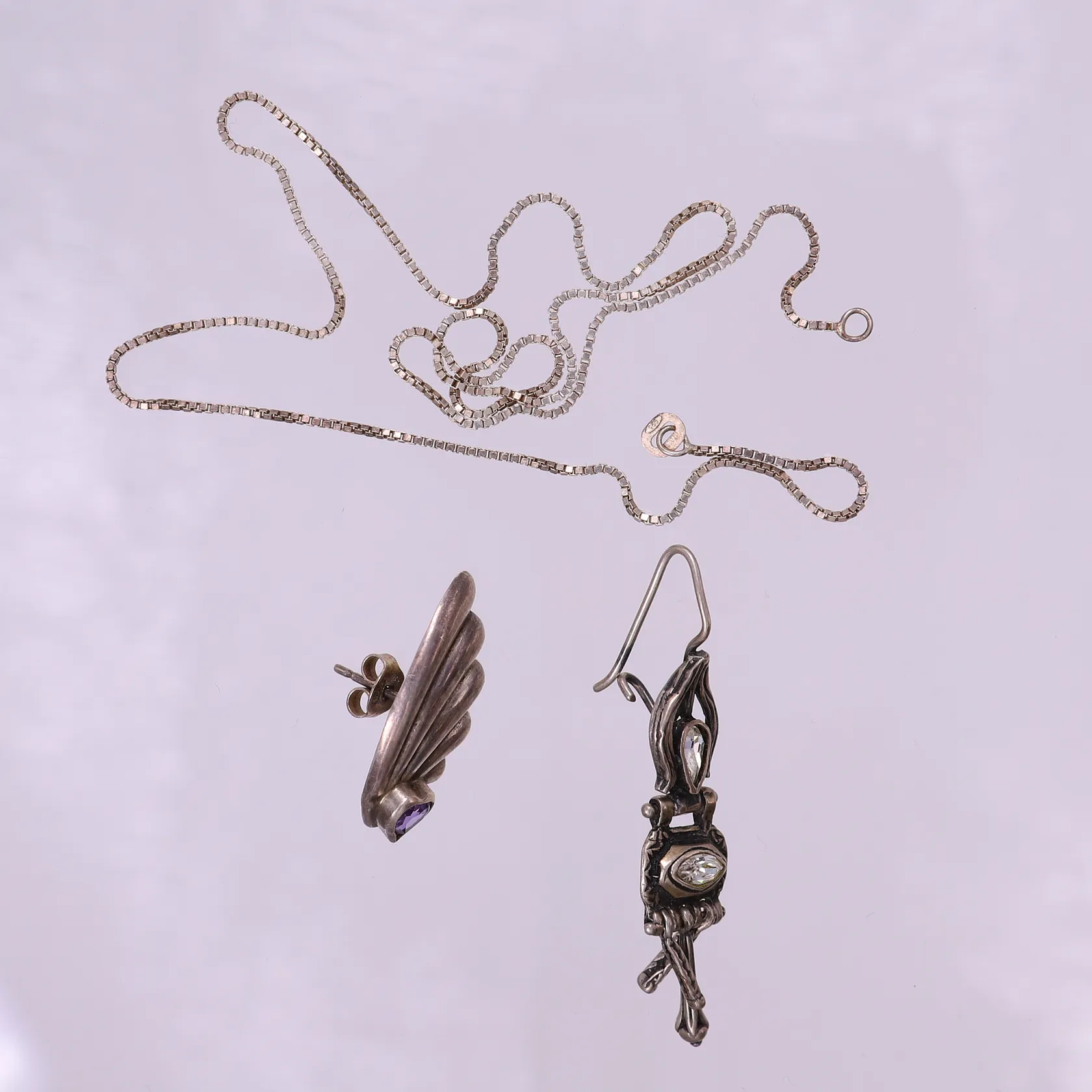 Skrotsilver, defekt, innehåller stenar. 925/1000 silver Vikt: 7,4 g.