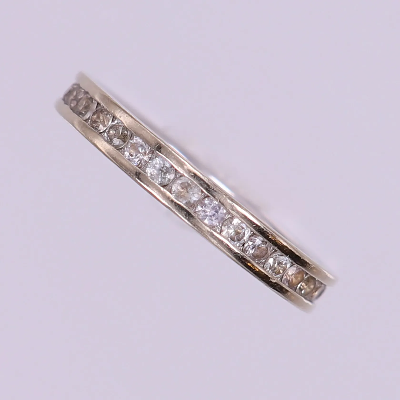 Ring vitguld helallians med vita stenar, stl 16¾, ca bredd 3mm. 14K Vikt: 2,9 g.