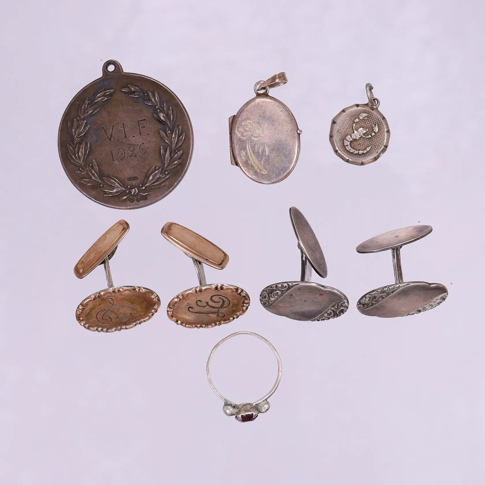 Silversmycken, buckliga/skeva, gravyrer, silver 830/1000. Vikt: 34,2 g.