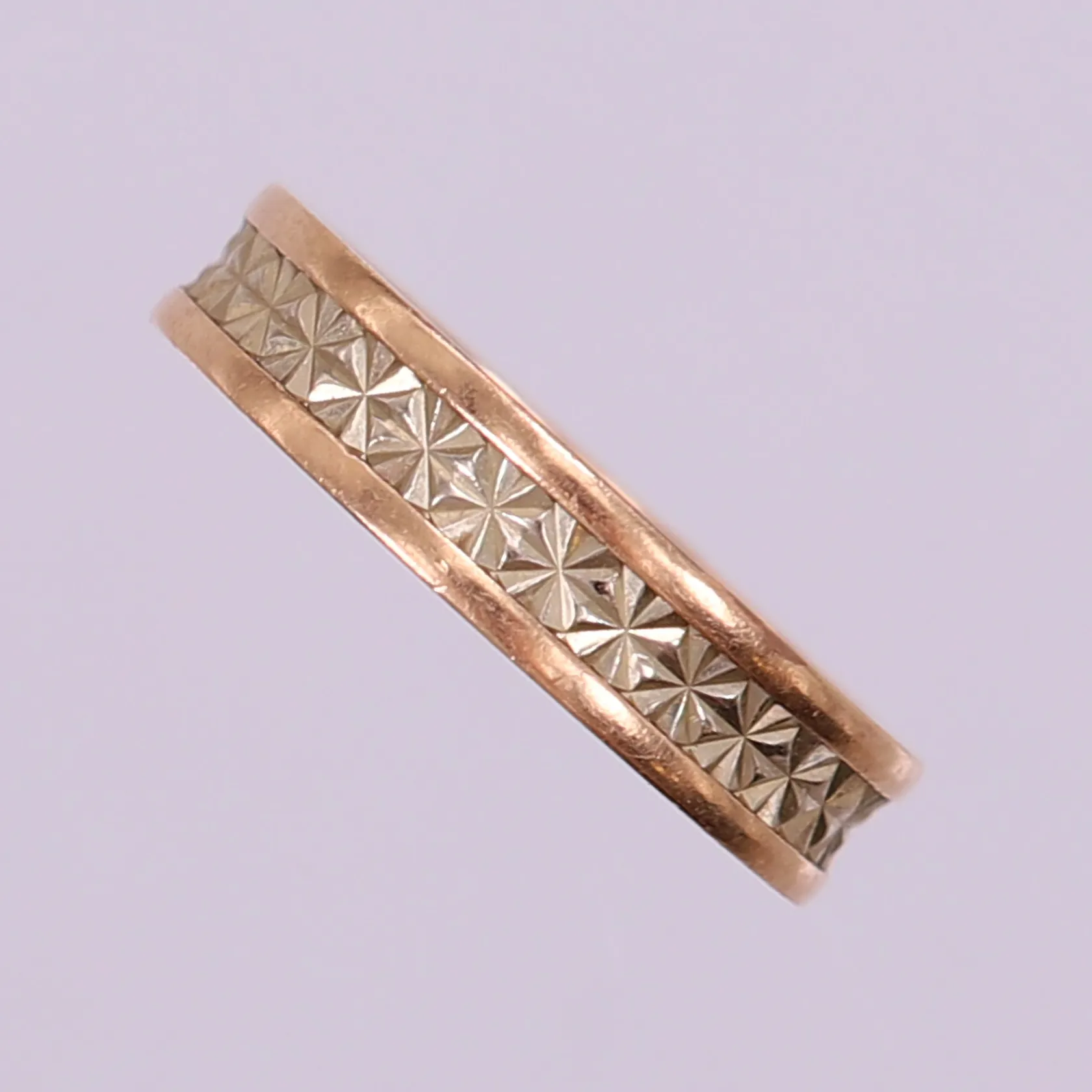 Ring med dekor, stl: 17, bredd 4mm, tvåfärgat, 18K. Vikt: 3,7 g.