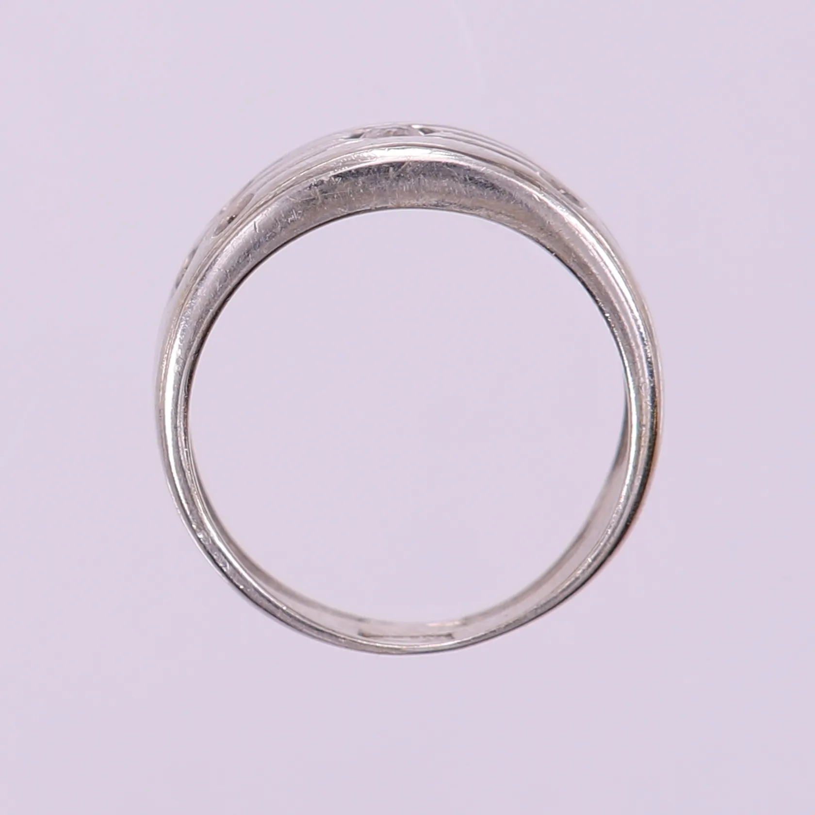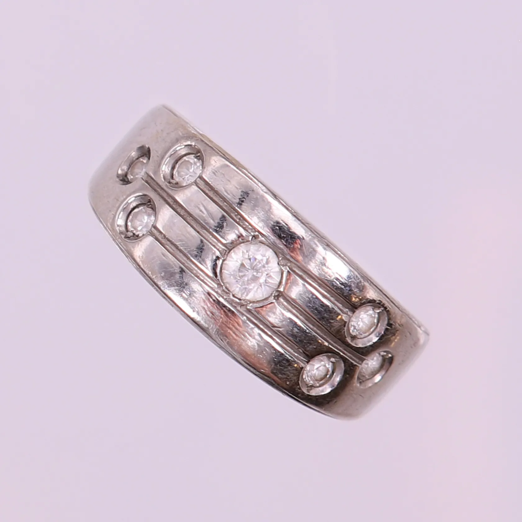 Ring med vita stenar, stl: 17, bredd 4,5-8mm, vitguld 18K. Vikt: 5,4 g.