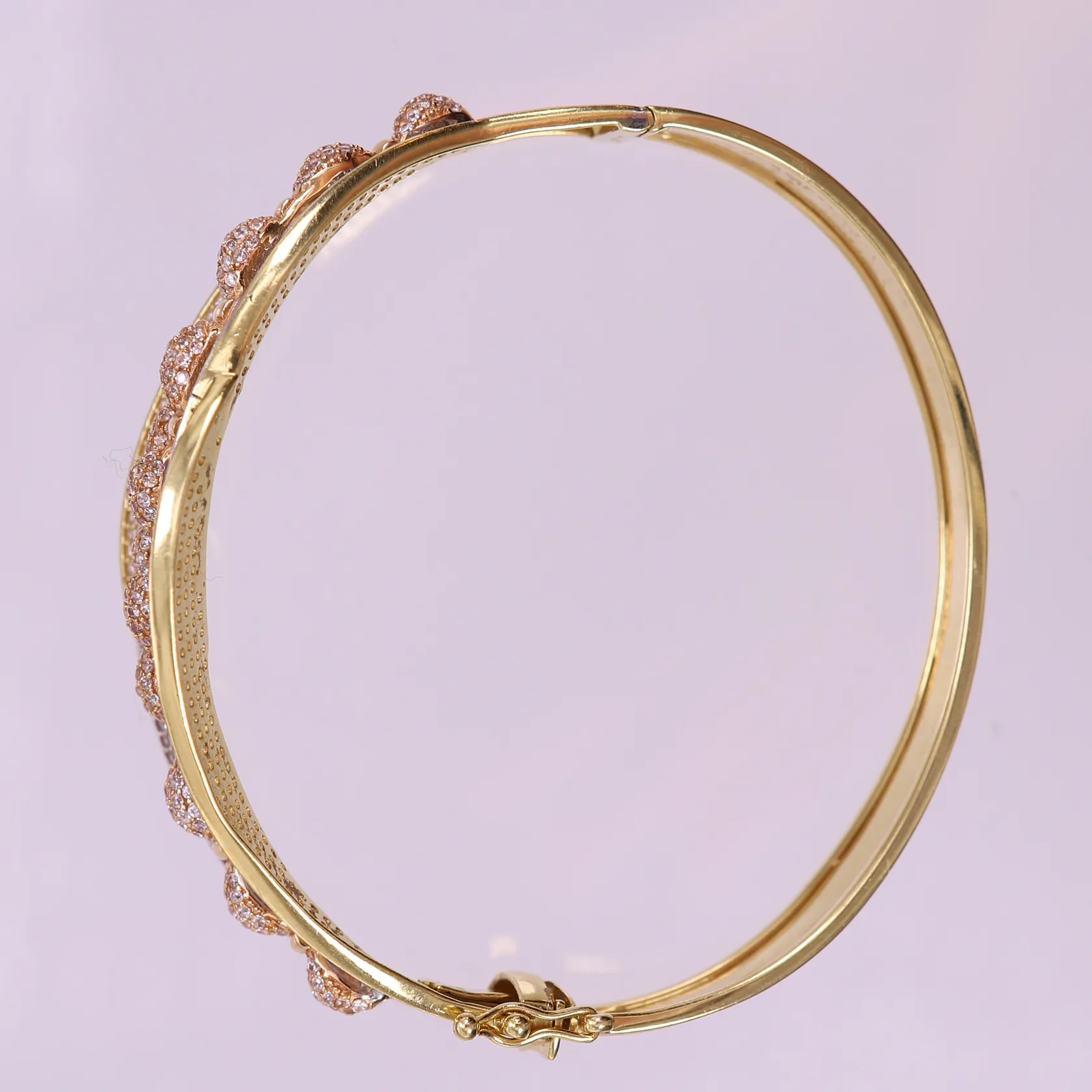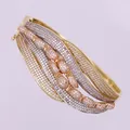 Armband med vita stenar, öppningsbar, Ø61mm, bredd 7,5-27,5mm, 18K. Vikt: 28,5 g.