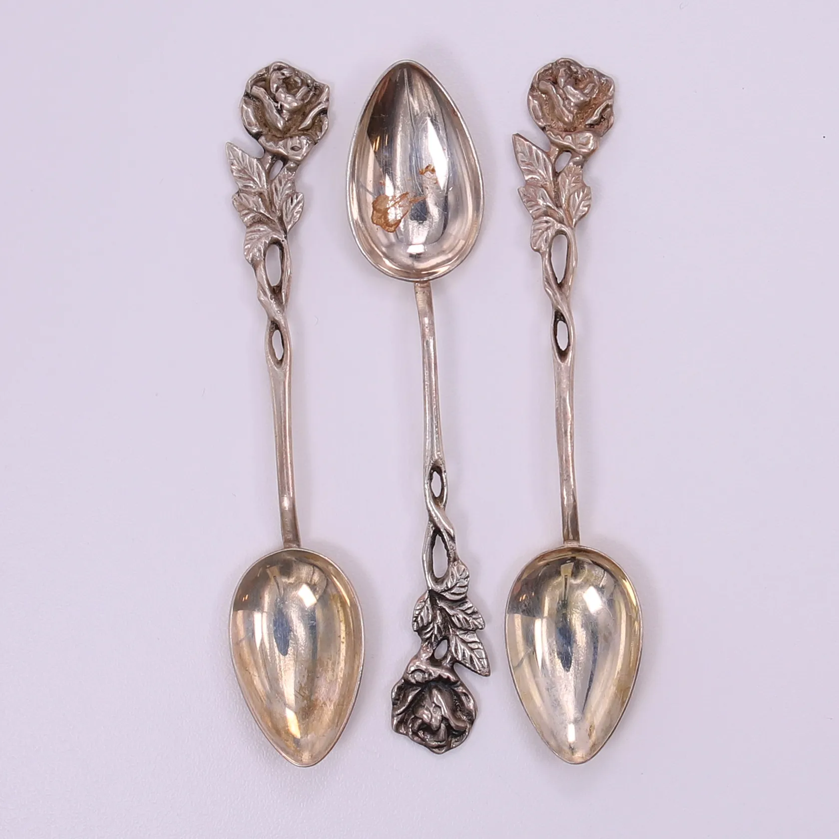 Tre skedar, längd 11cm, silver 830/1000. Vikt: 32,3 g.