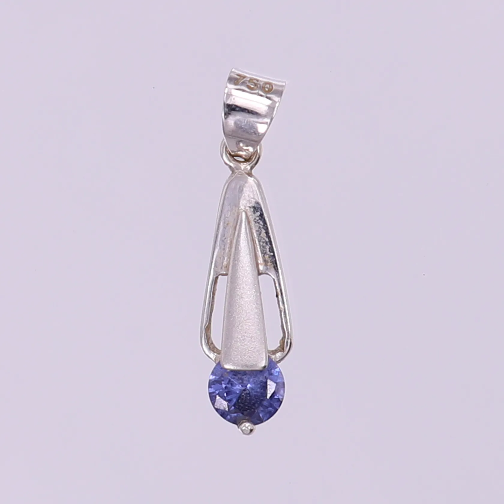 Hänge vitguld med blå sten, ca 21,5x 5,5mm inkl ögla. 18K Vikt: 1 g.