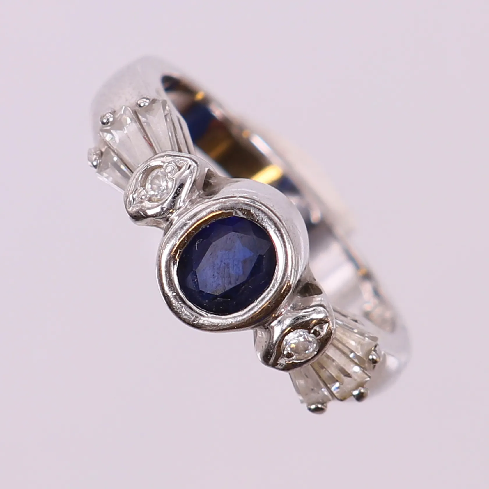 Ring med blå och vita stenar, stl 17¾, ca bredd 2,5-7,5mm, vitguld. 18K Vikt: 4,7 g.