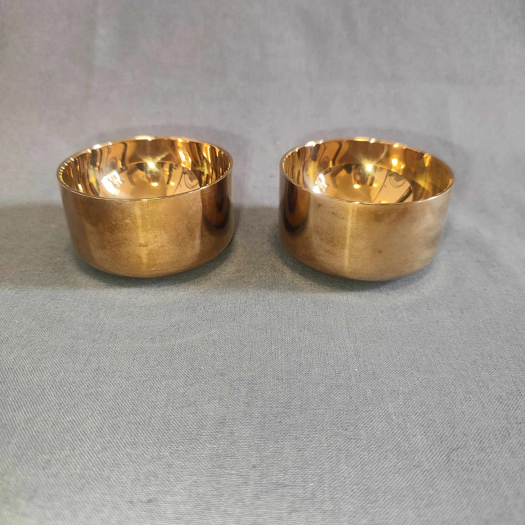 Ett par ljuslyktor, Skultuna, formgivna av Pierre Forsell, höjd ca 3cm, Ø60mm, mässing, kartong.