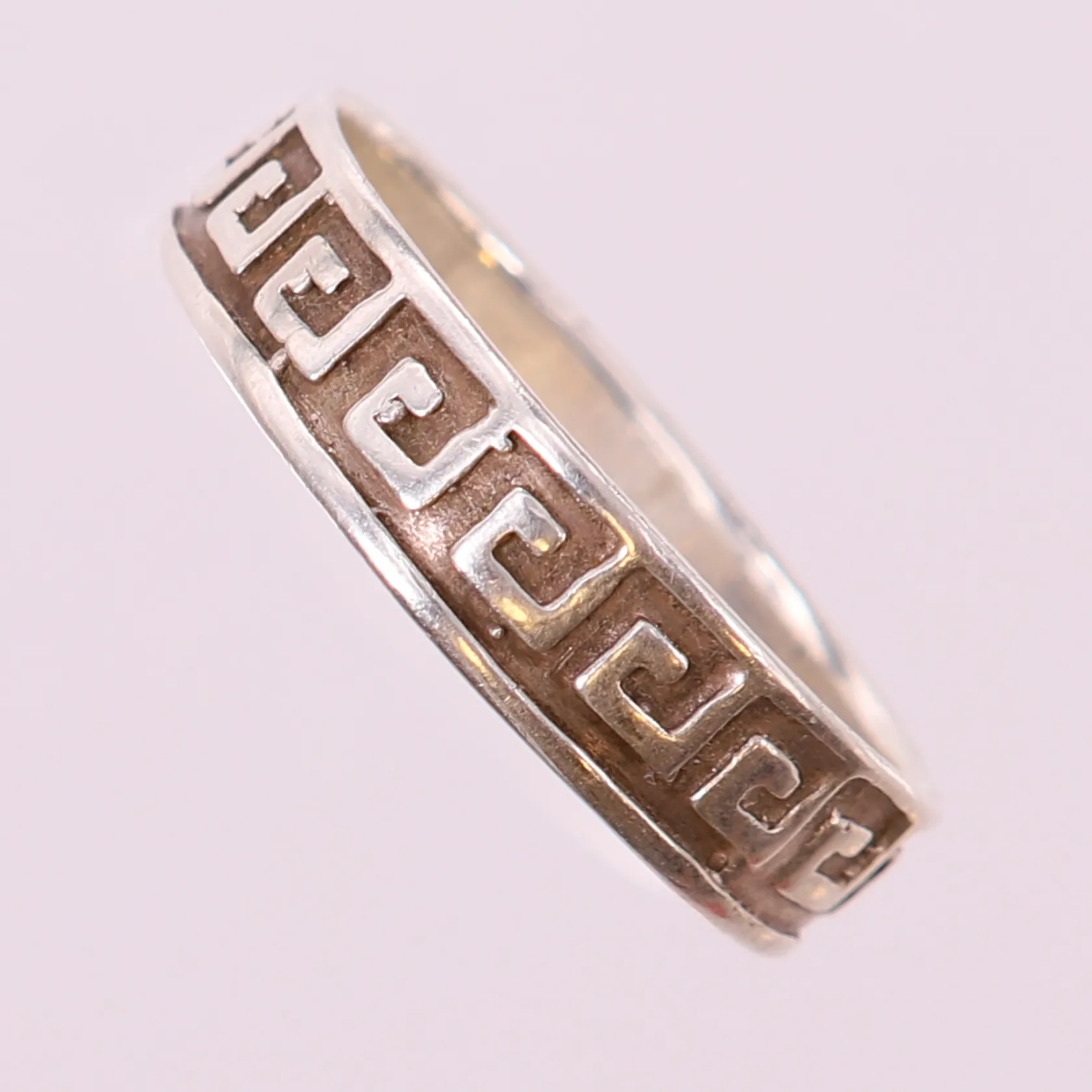 Ring med meandermönster, stl 21½, ca bredd 6mm, skev. 925/1000 silver Vikt: 3,3 g.