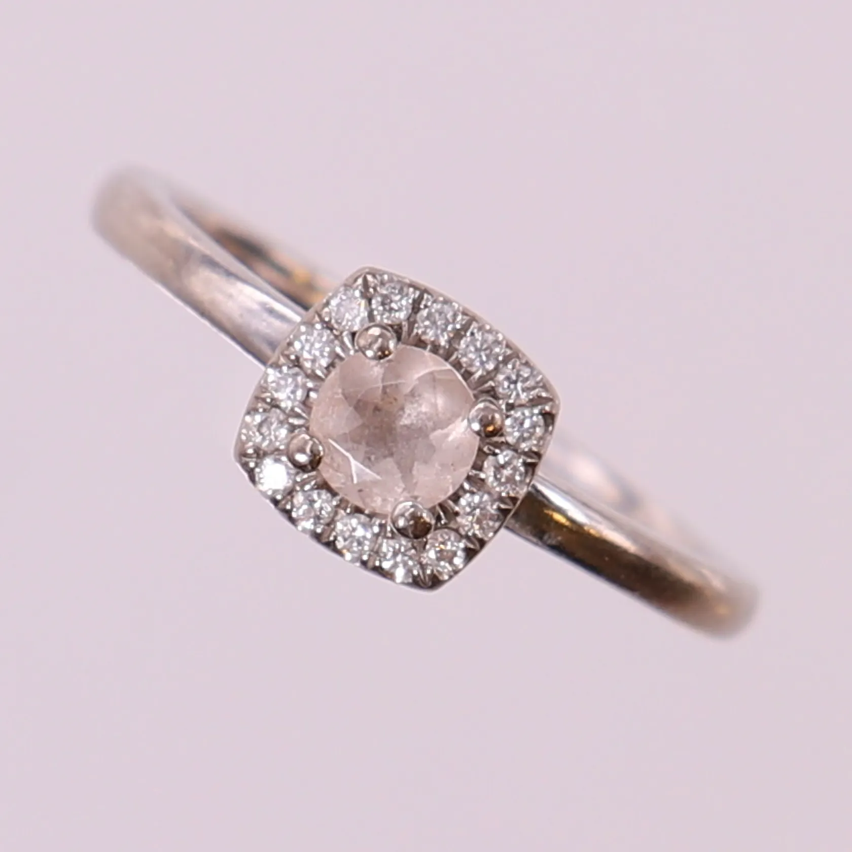 Ring med morganit och 8/8-slipade diamanter 16x0,005ct, stl 16, ca bredd 1,5-6,5mm, vitguld, GHA. 18K Vikt: 3 g.