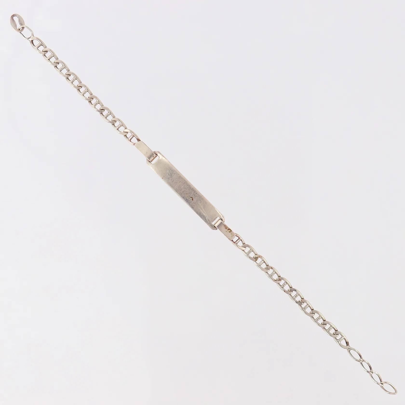 Armband med platta, längd 15cm, bredd 5mm, saknar lås, silver 925/1000. Vikt: 3,4 g.