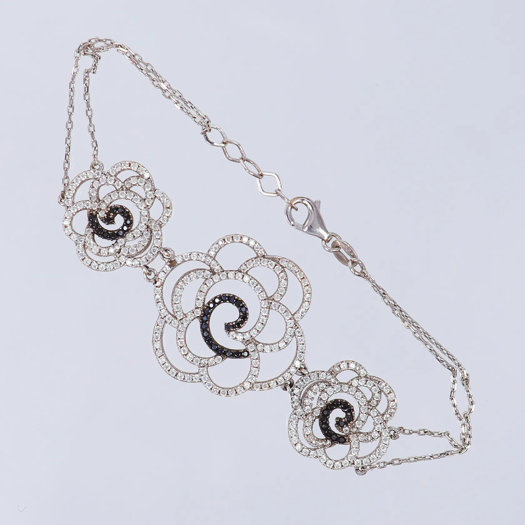 Armband med vita och svarta stenar, ca 16-17,5mm, bredd 1,5-23mm, vitguld. 14K Vikt: 7,1 g.