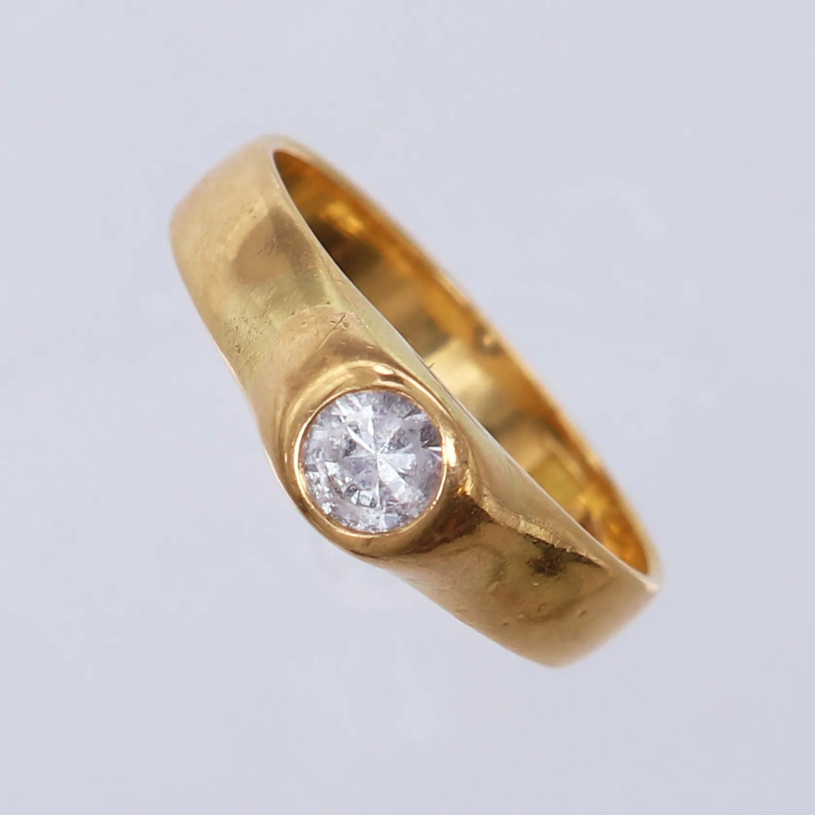 Ring med vit sten, stl 17¼, ca bredd 3,4-5,7mm, något skev. 18K Vikt: 4,4 g.