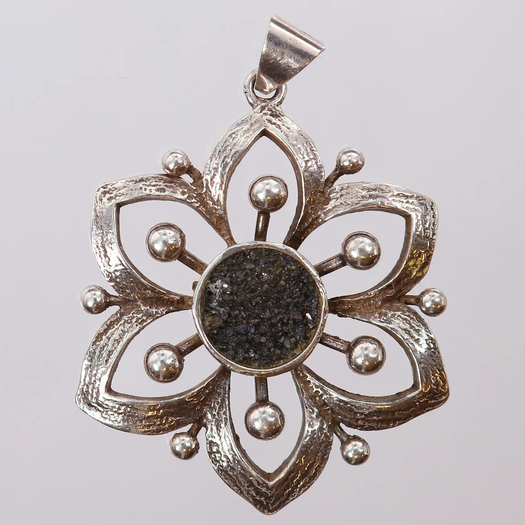 Hänge med pyrit, 48x36mm ink ögla, skadad pyrit, silver 830/1000. Vikt: 11,7 g.