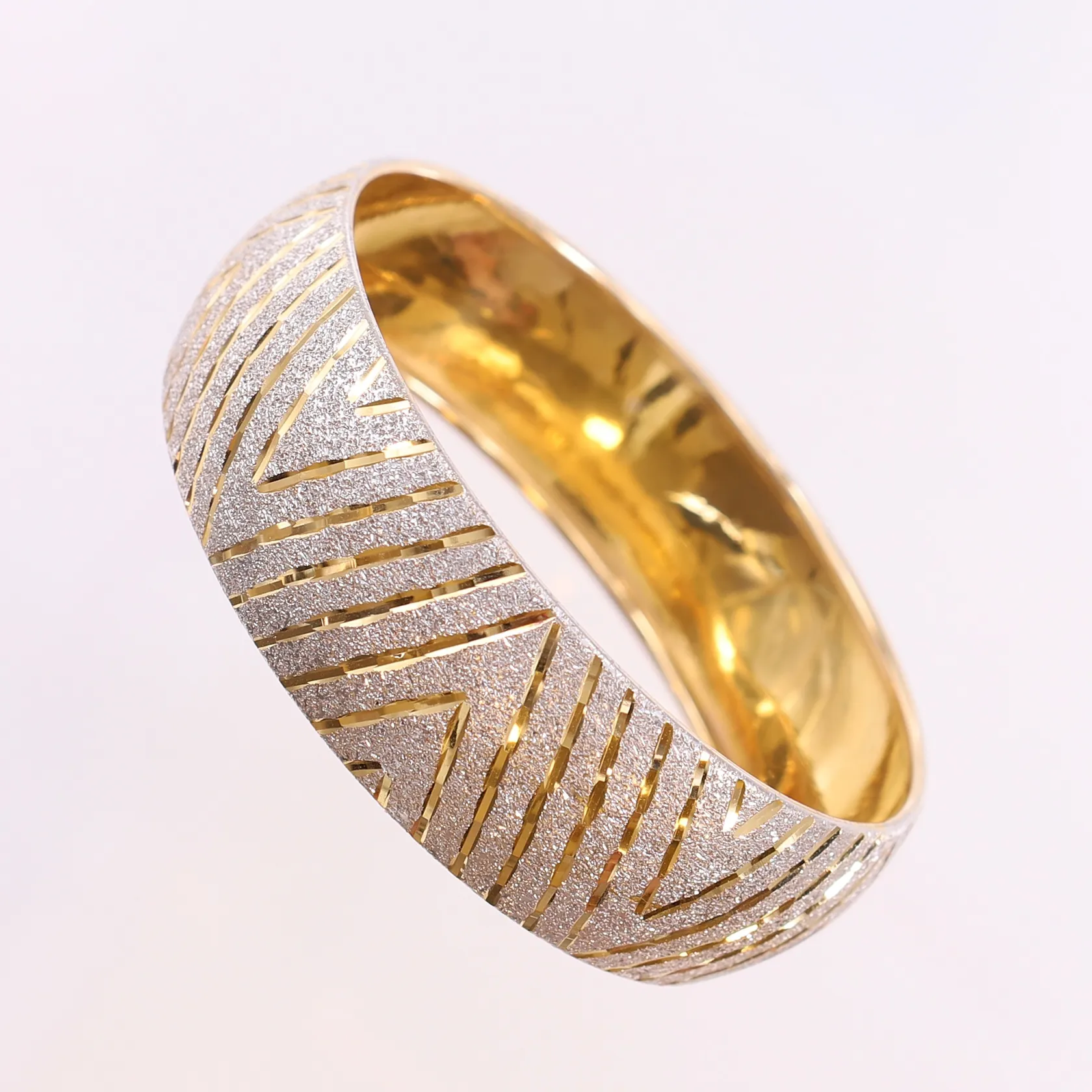 Armring med vitguldsdetaljer, Ø60mm, bredd ca 20mm, 18K. Vikt: 27,2 g.