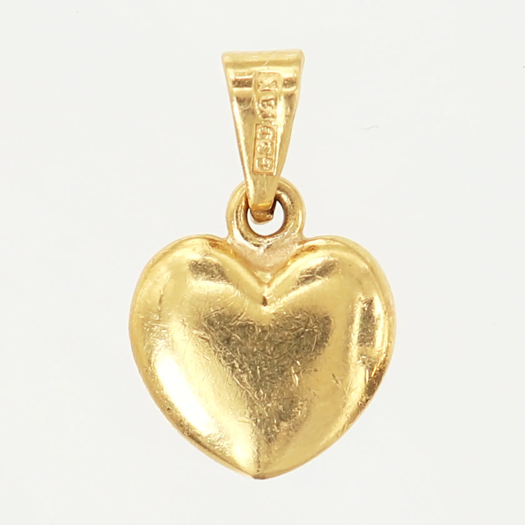Hänge hjärta, 16x10mm ink ögla, 18K. Vikt: 2,6 g.