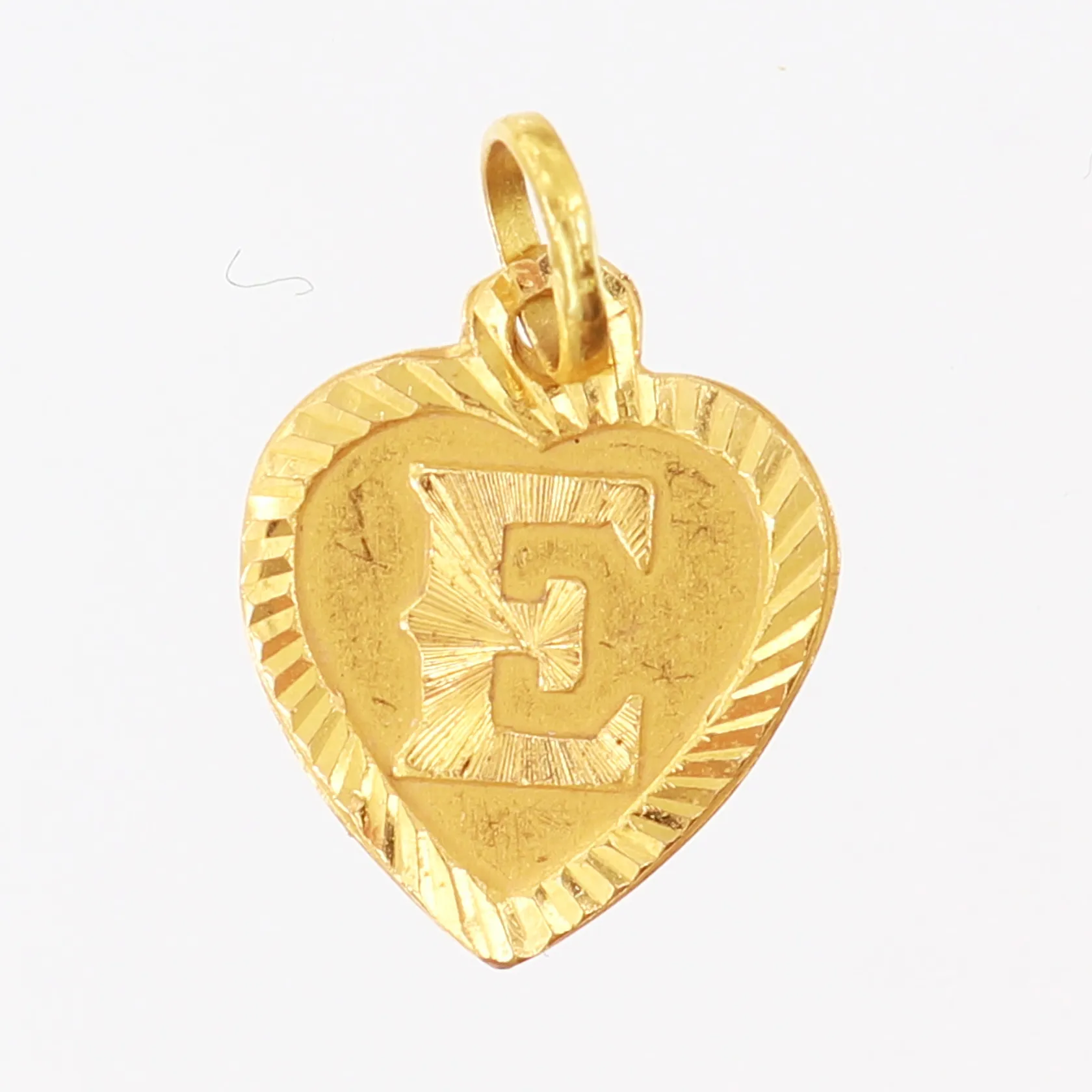 Hänge hjärta bokstav E, ca 24x15,5mm inkl ögla. 21K Vikt: 1,1 g.