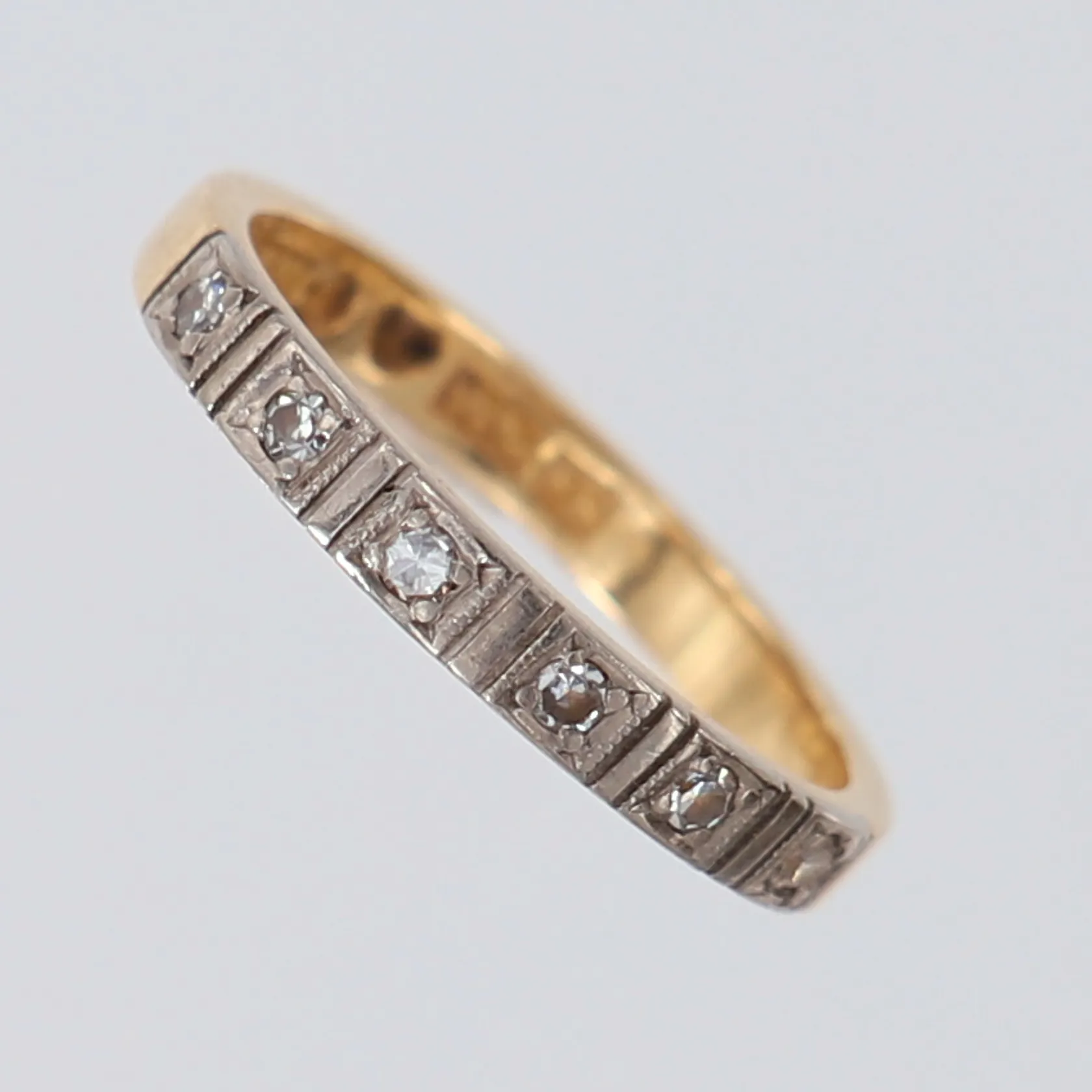 Ring med 8/8-slipade diamanter 6 x ca 0,01ct, stl: 14½, bredd 2,3mm, skev, 18K. Vikt: 1,9 g.