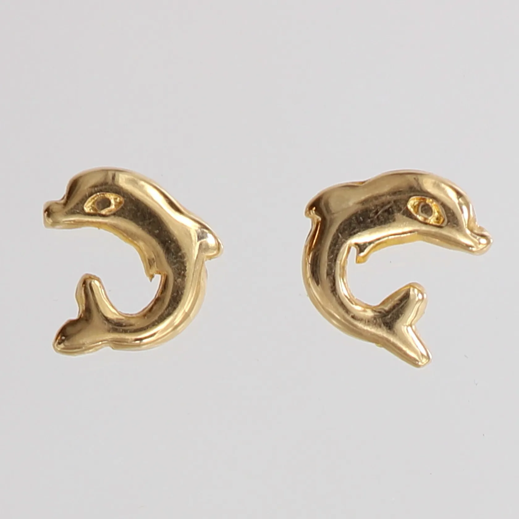 Ett par örhängen delfiner, ca 8,5x7,5mm, saknar en snurrebuss. 14K Vikt: 1,3 g.