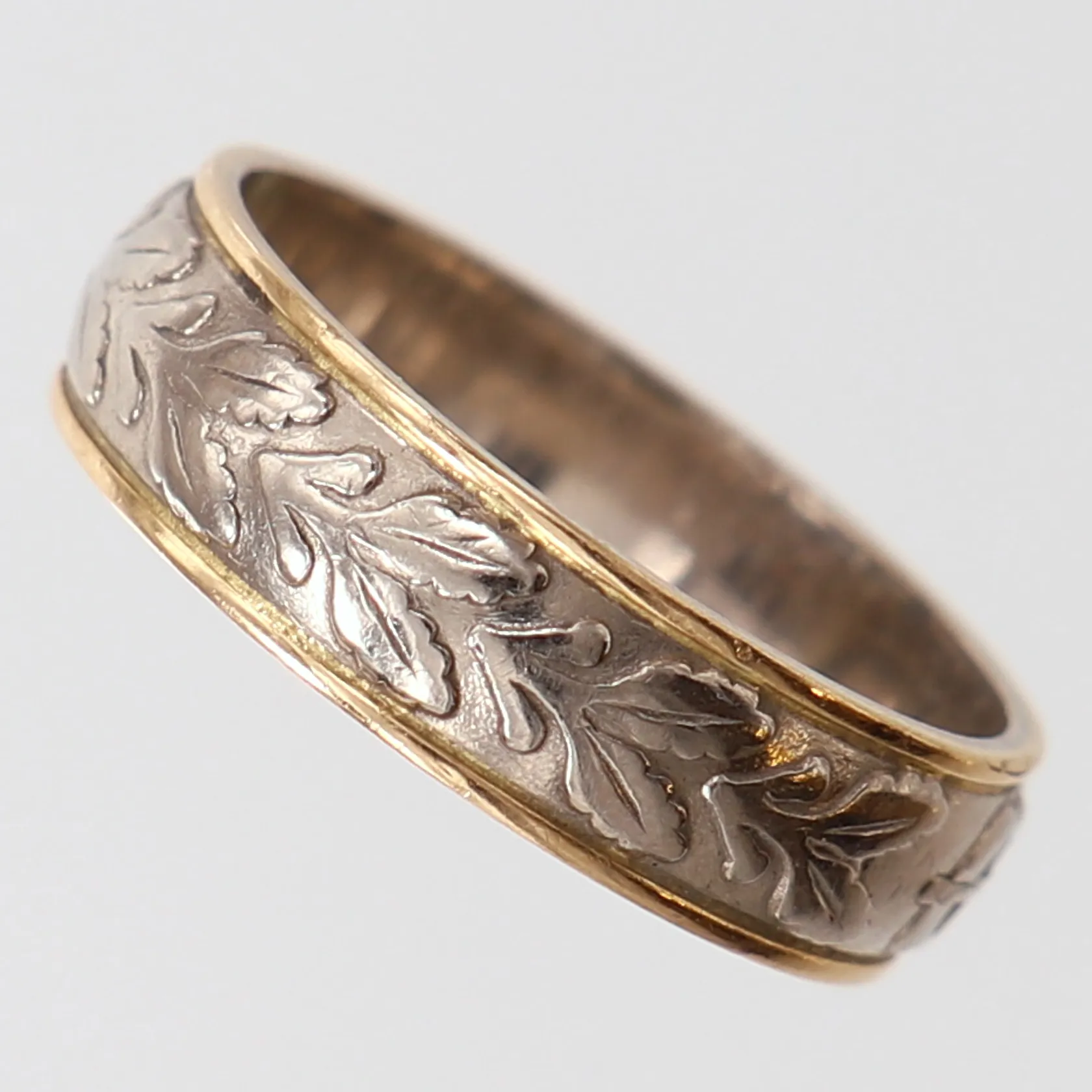 Ring med dekor, stl: 18, bredd 5,5mm, tvåfärgat 18K. Vikt: 6,1 g.