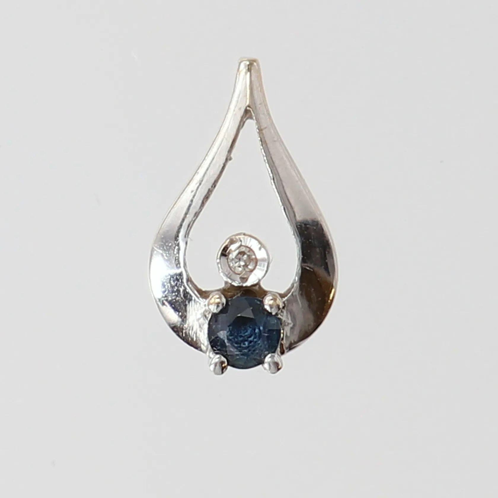 Hänge med safir samt 8/8-slipad diamant 1 x ca 0,0075ct, 12,5x7,5mm, vitguld 18K. Vikt: 1,1 g.
