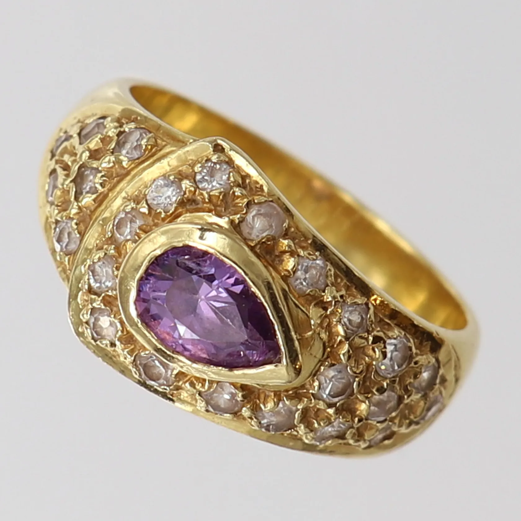 Ring med stenar, stl 18, bredd ca 5-11mm, repig, 18K Vikt: 7,6 g.