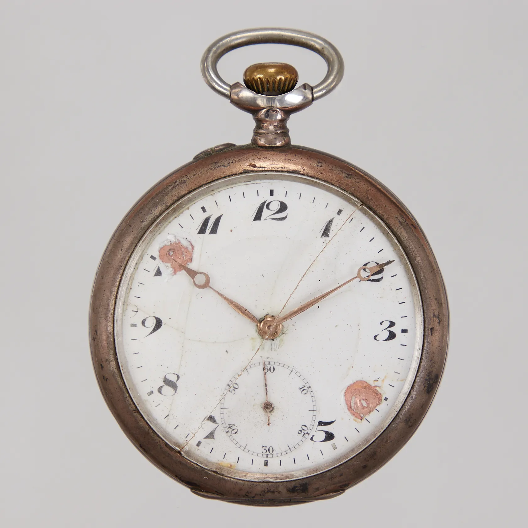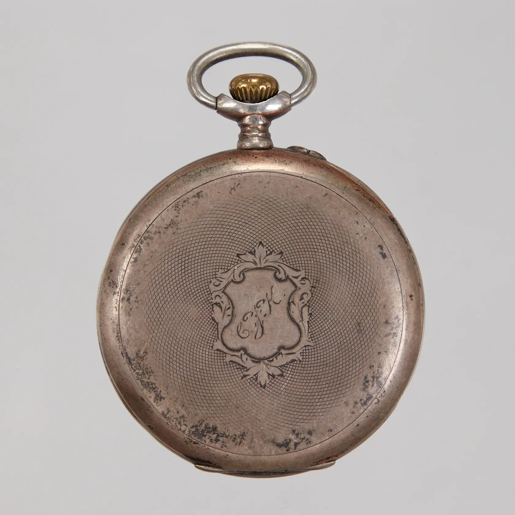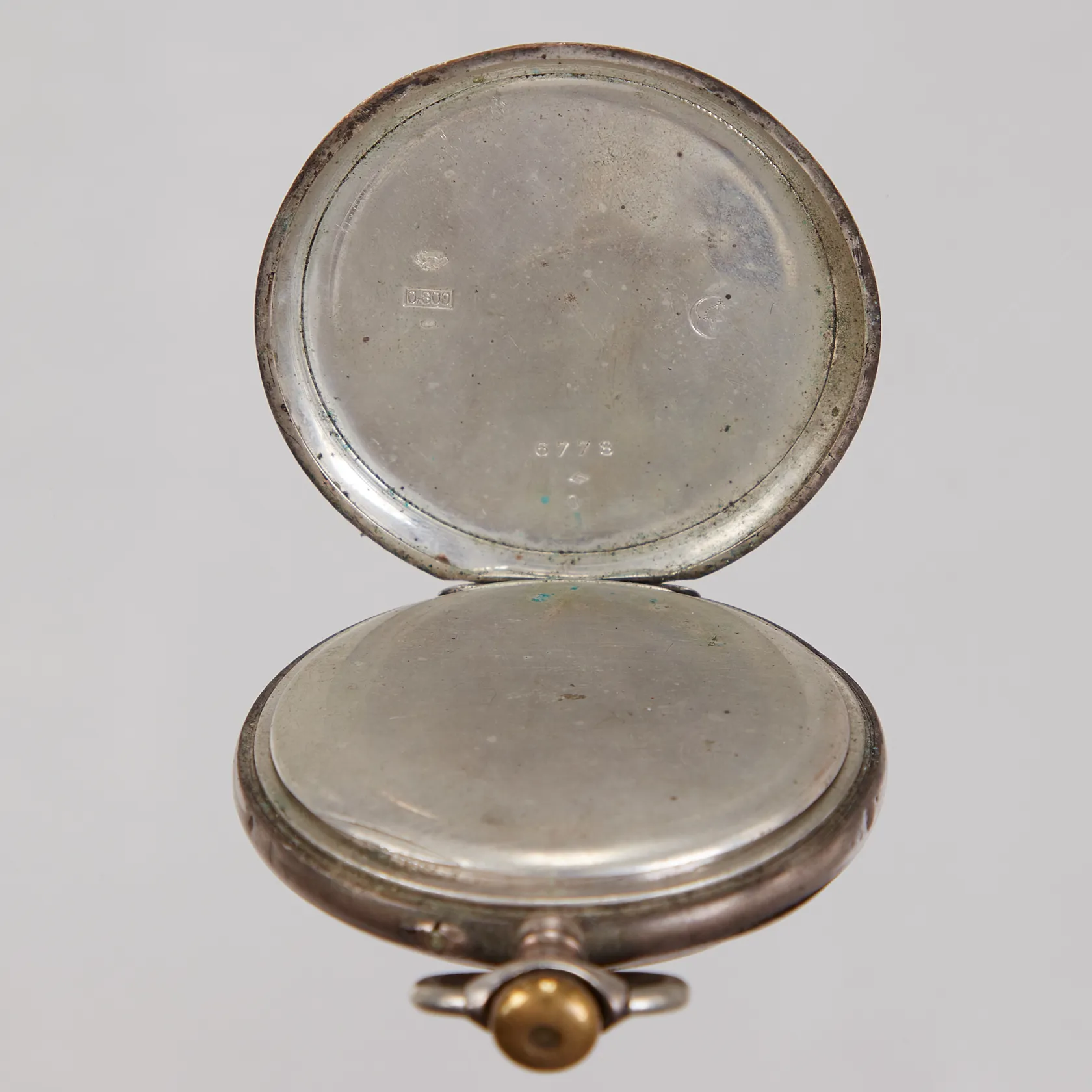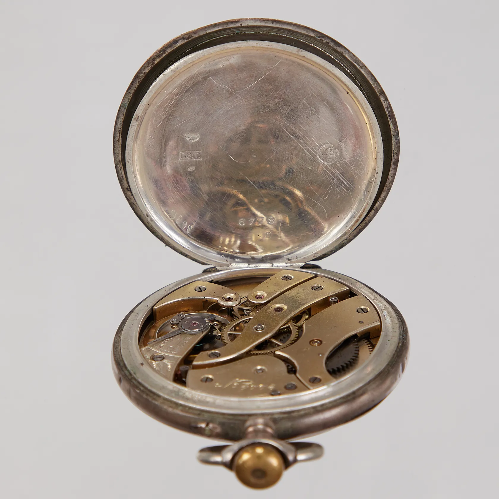 Fickur, Ø ca 50mm, defekt, går ej, skadad urtavla, skadat glas, 800/1000 silver. Bruttovikt: 83,7g