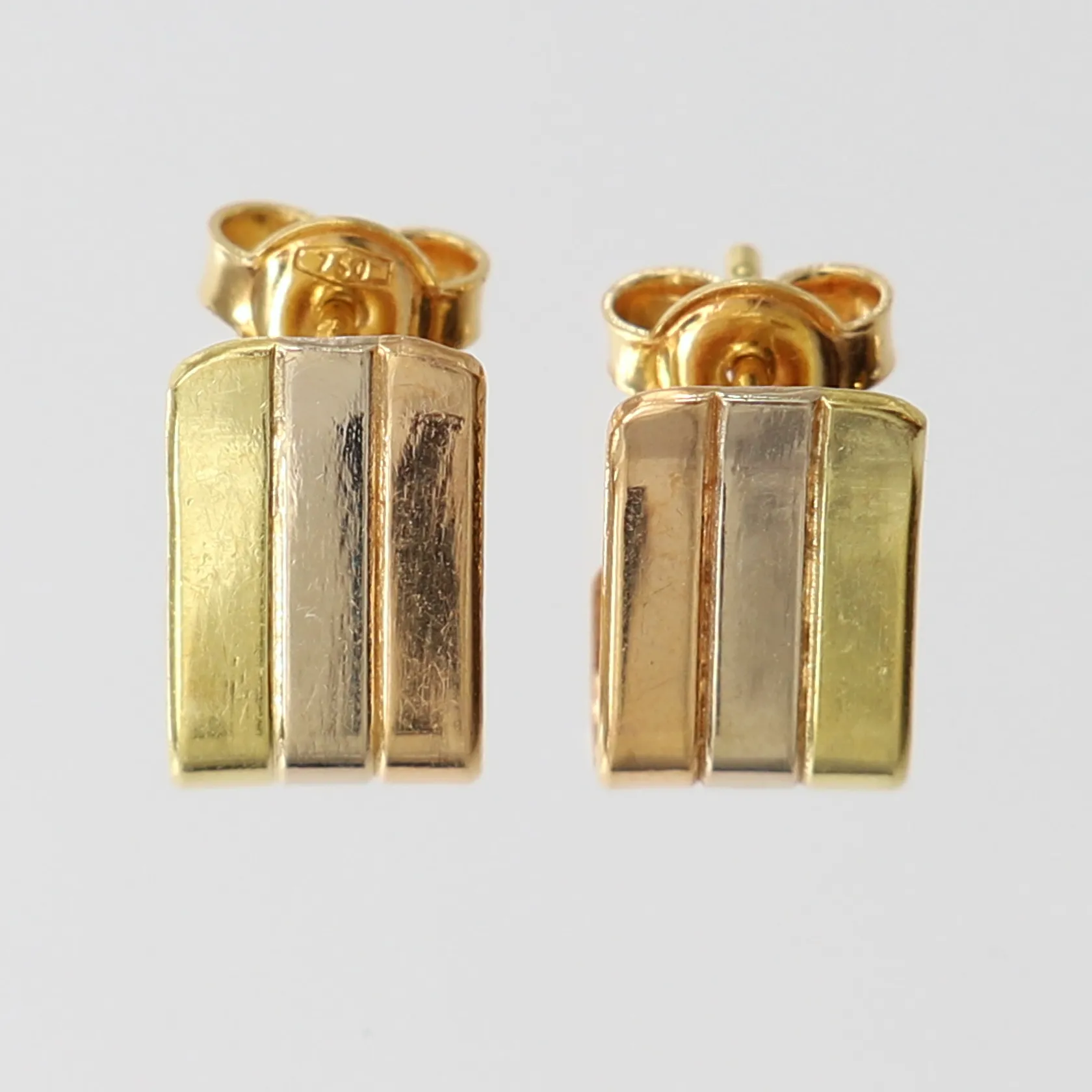 Ett par örhängen, tretonad, ca 14x7mm, repor, 18K Vikt: 3 g.