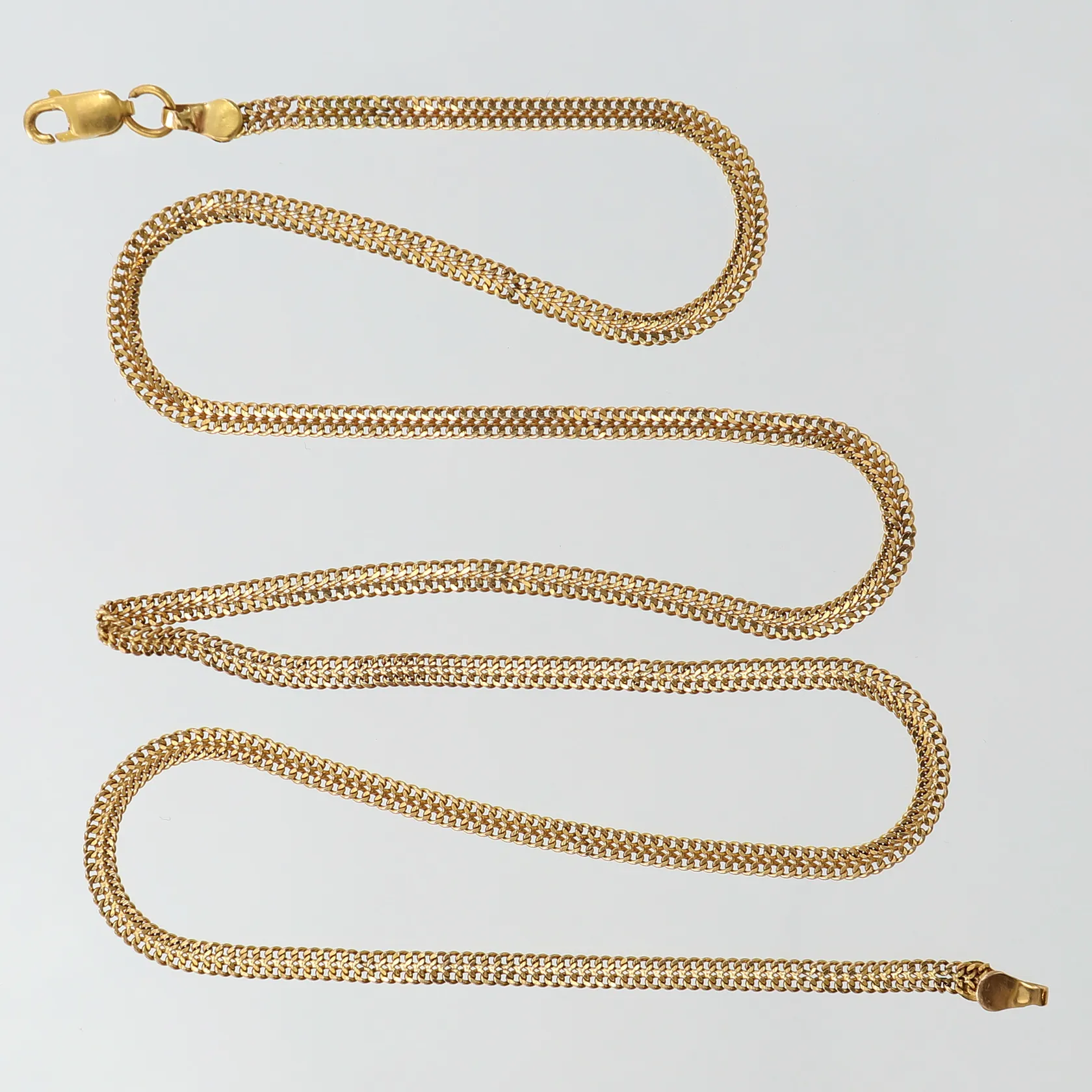 Kedja Fiskben, längd 47cm, bredd 2,5mm, ojämn, 22K. Vikt: 5,2 g.