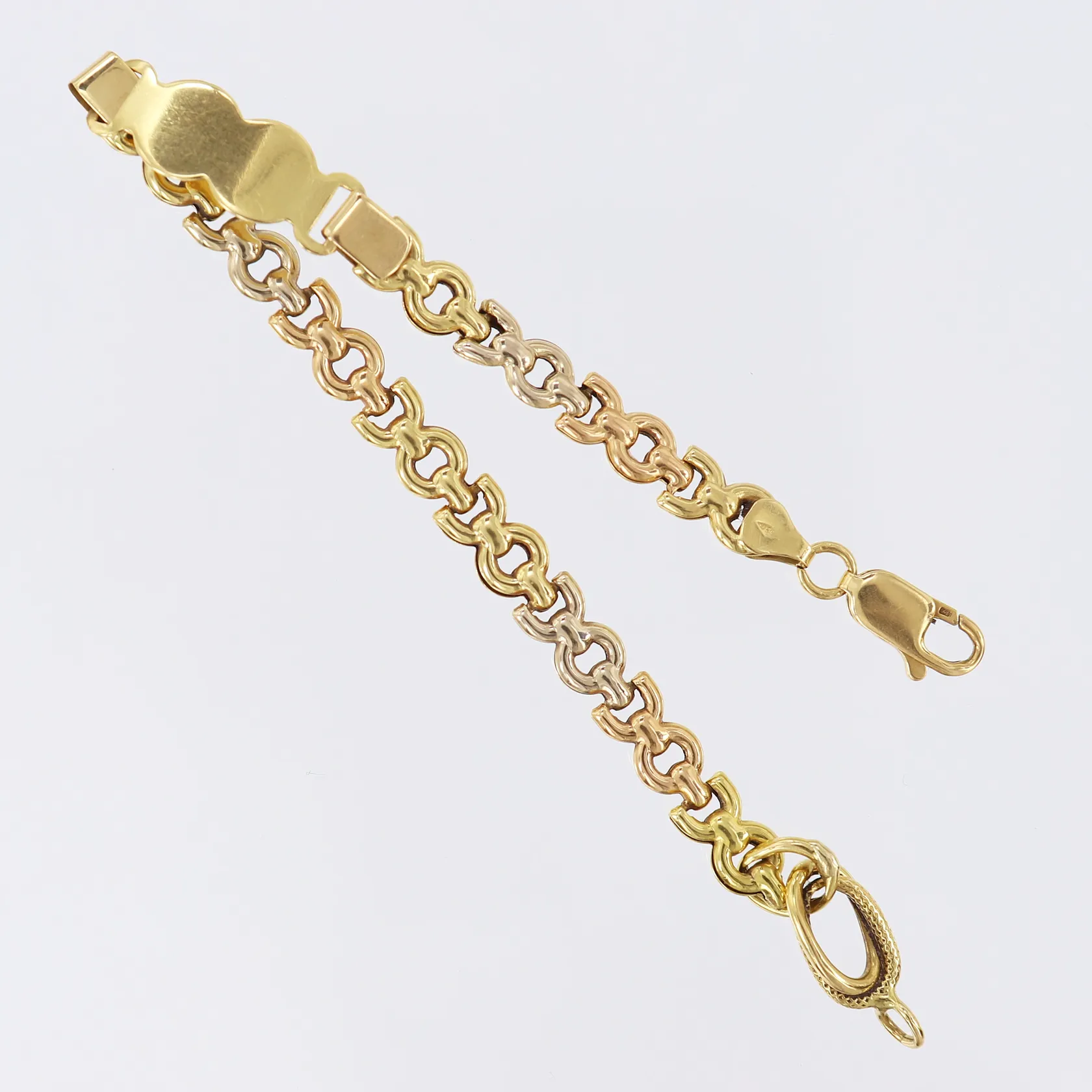 Armband, längd 19,5cm, bredd 6-9mm, ocentrerat, ihåligt, tvåfärgat 18K. Vikt: 9,3 g.