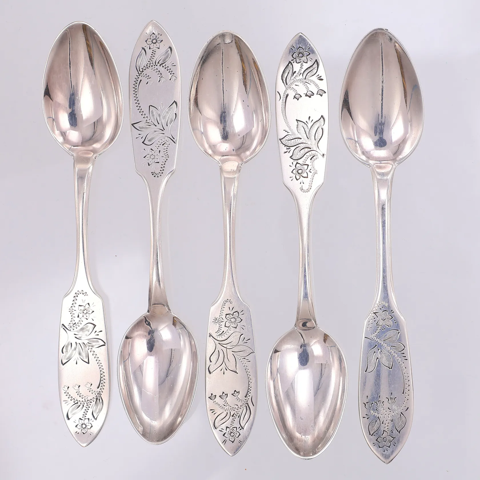 5 Kaffeskedar, modell Tornedal, ca 12cm, 830/1000 silver Vikt: 70,7 g.