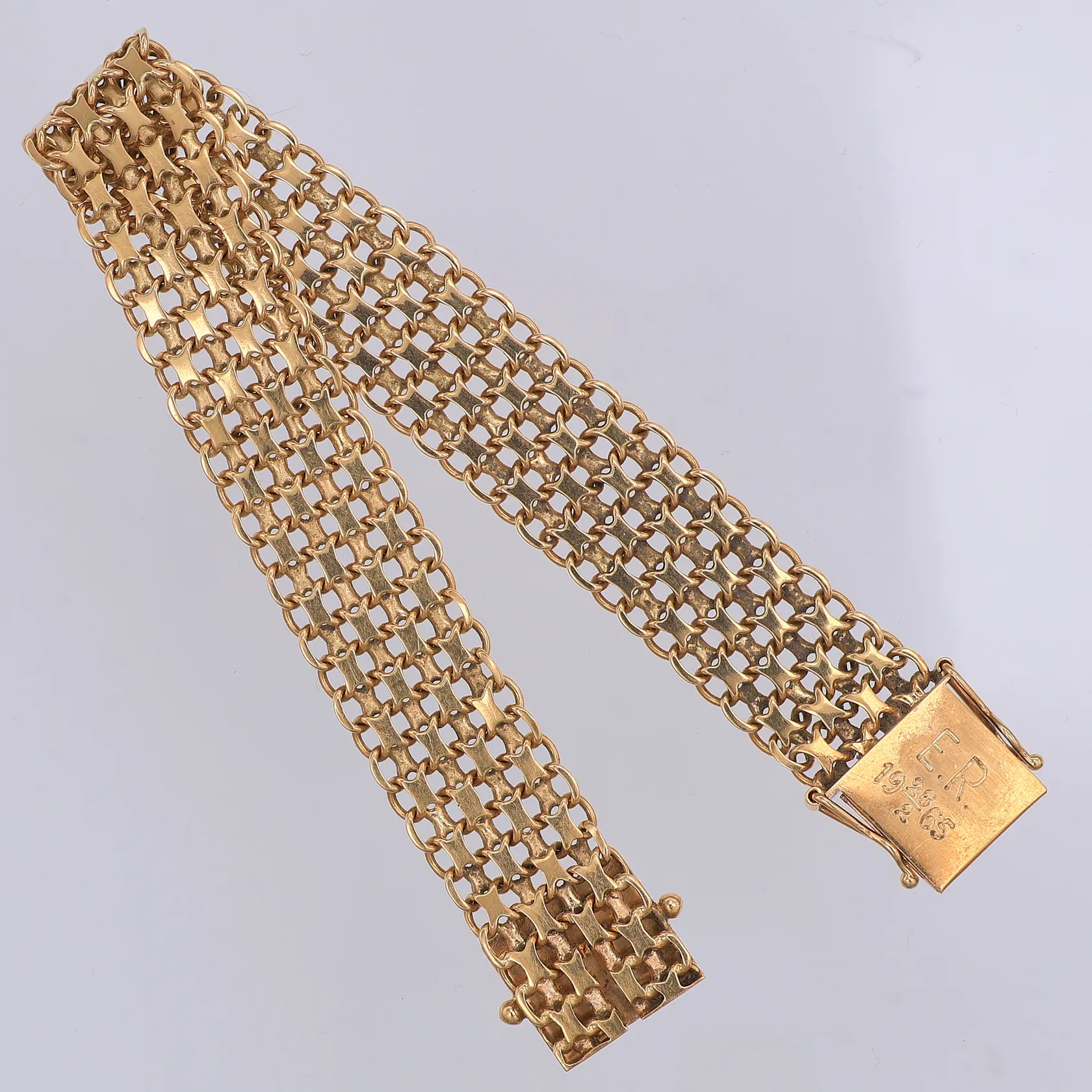 Armband, X-länk, gravyr, 18,5cm, bredd 14mm, Ädelsmycken år 1964, 18K Vikt: 25,9 g.