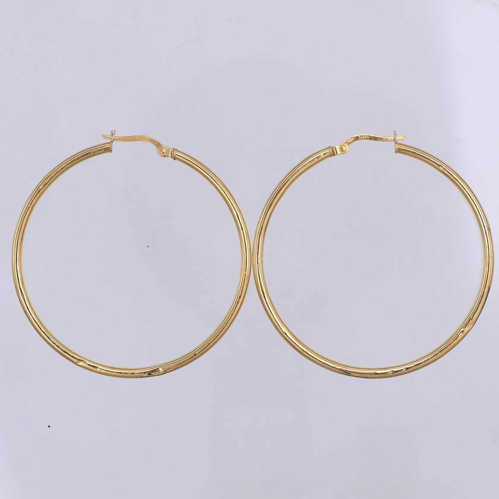 Ett par örhängen, 45mm, bredd 2mm, ihåliga, ojämna, 18K Vikt: 2,7 g.