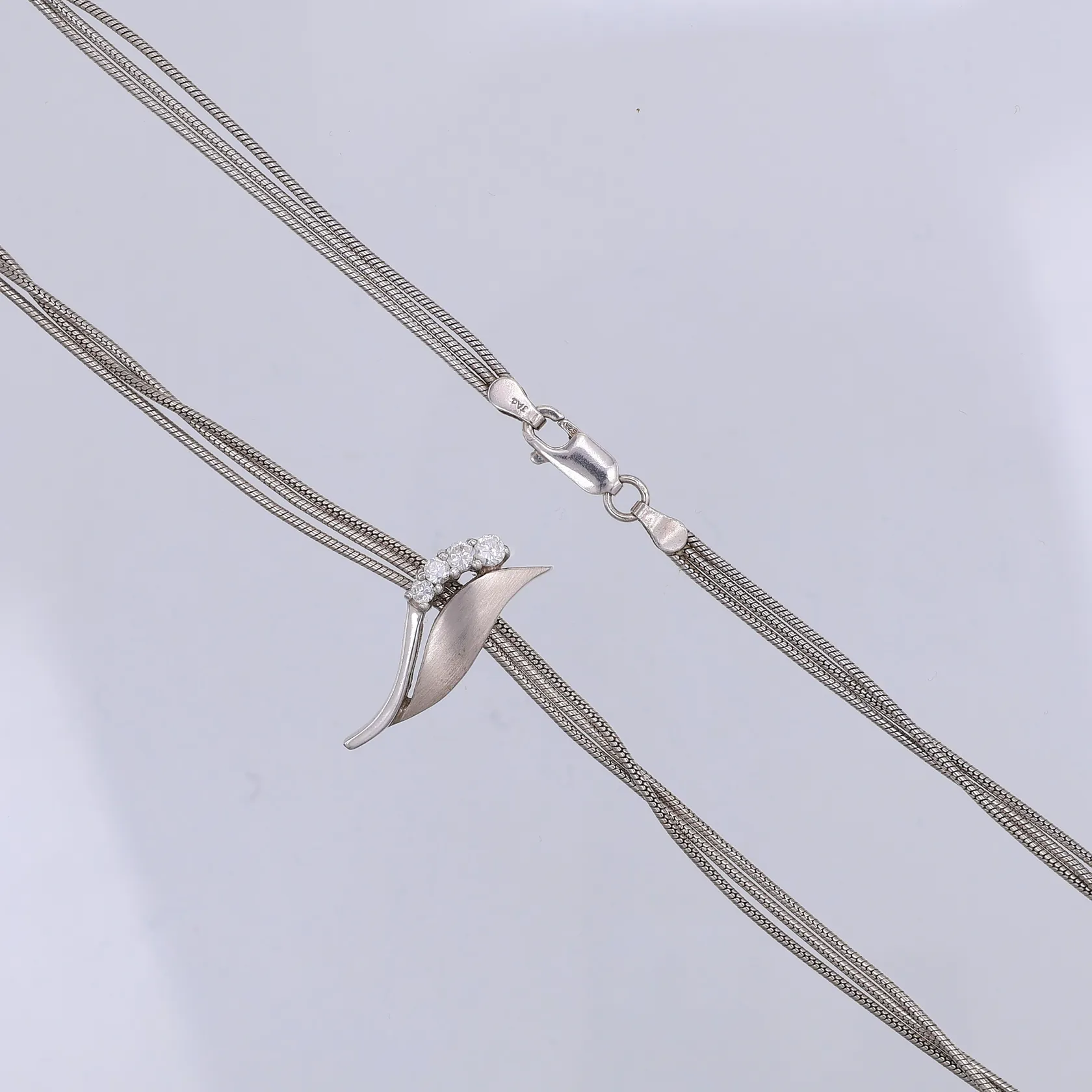 Collier, treradig, 42cm, hänge vita stenar, 25mm, Dahlberg, 925/1000 silver Vikt: 14,2 g.