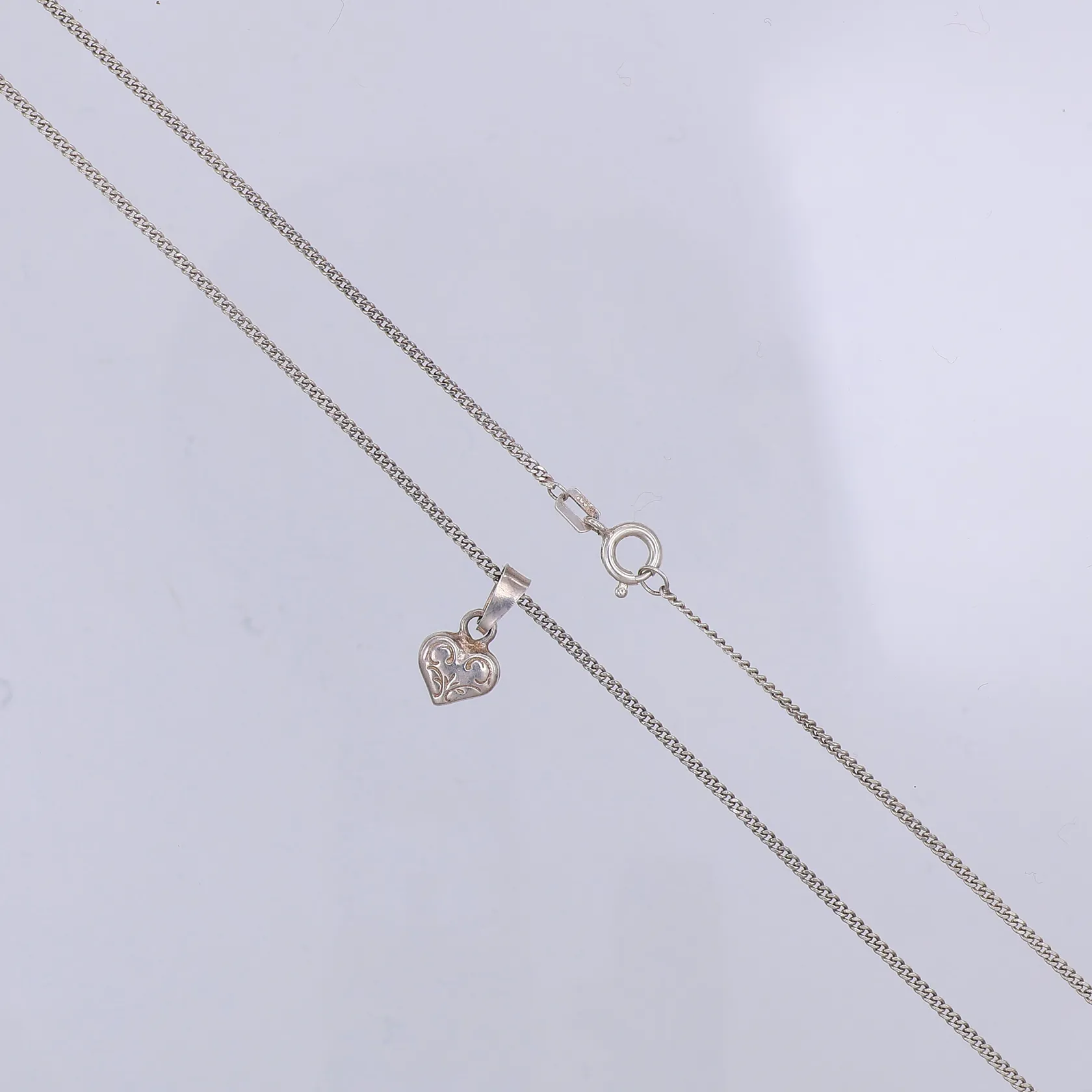 Kedja, Pansar, 38,5cm, hänge hjärta, 15mm, 835/1000 silver Vikt: 3,1 g.