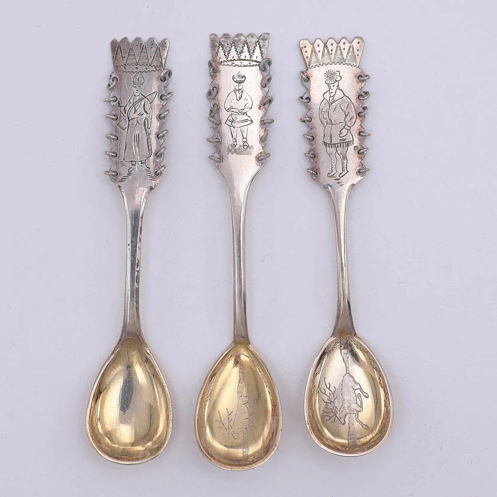 3 Kaffeskedar, samemotiv, olika silversmeder år 1921-1944, 830/1000 silver Vikt: 35,7 g.