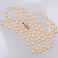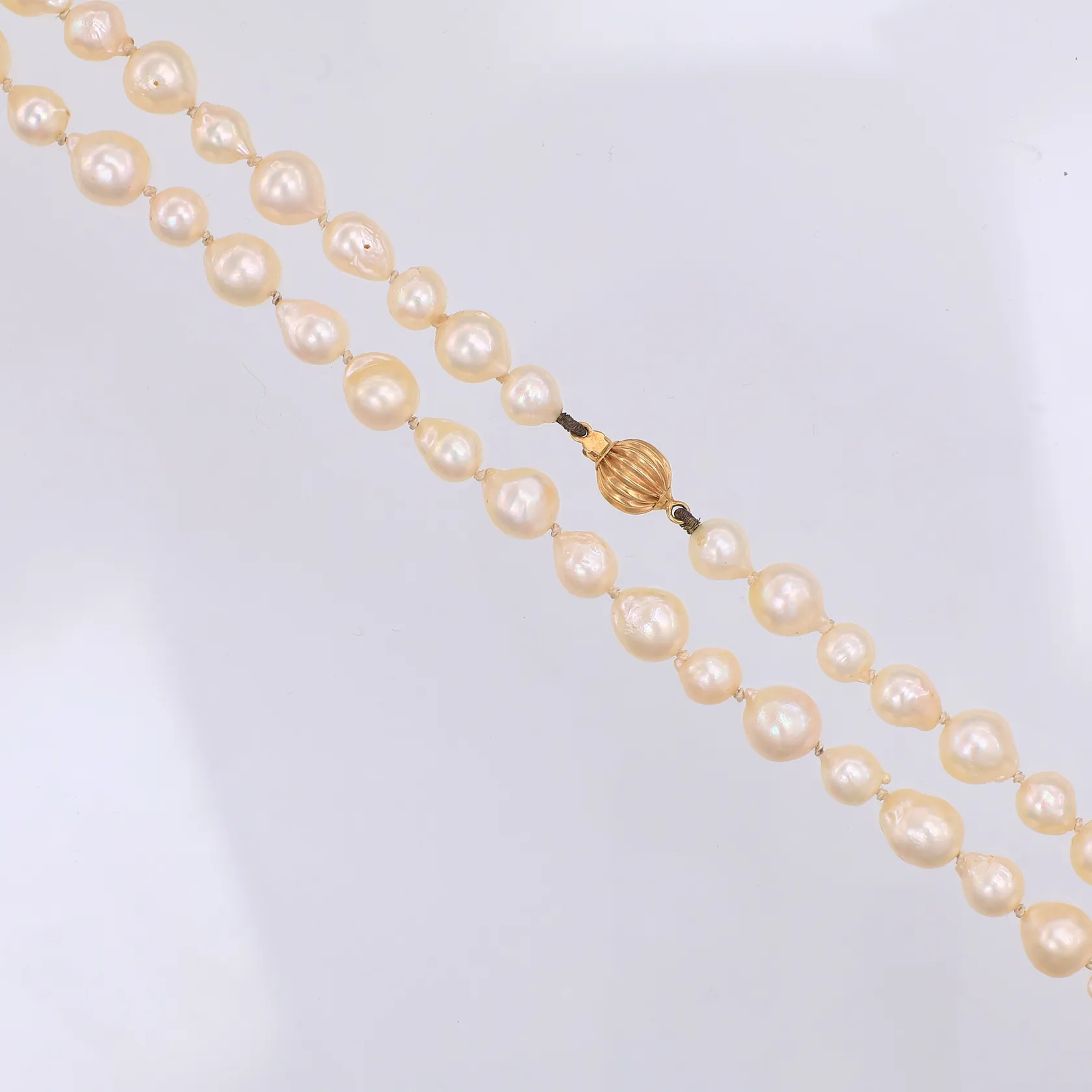 Pärlcollier, barocka odlade sötvattenpärlor, Ø6-8mm, 90cm, guldlås, 18K