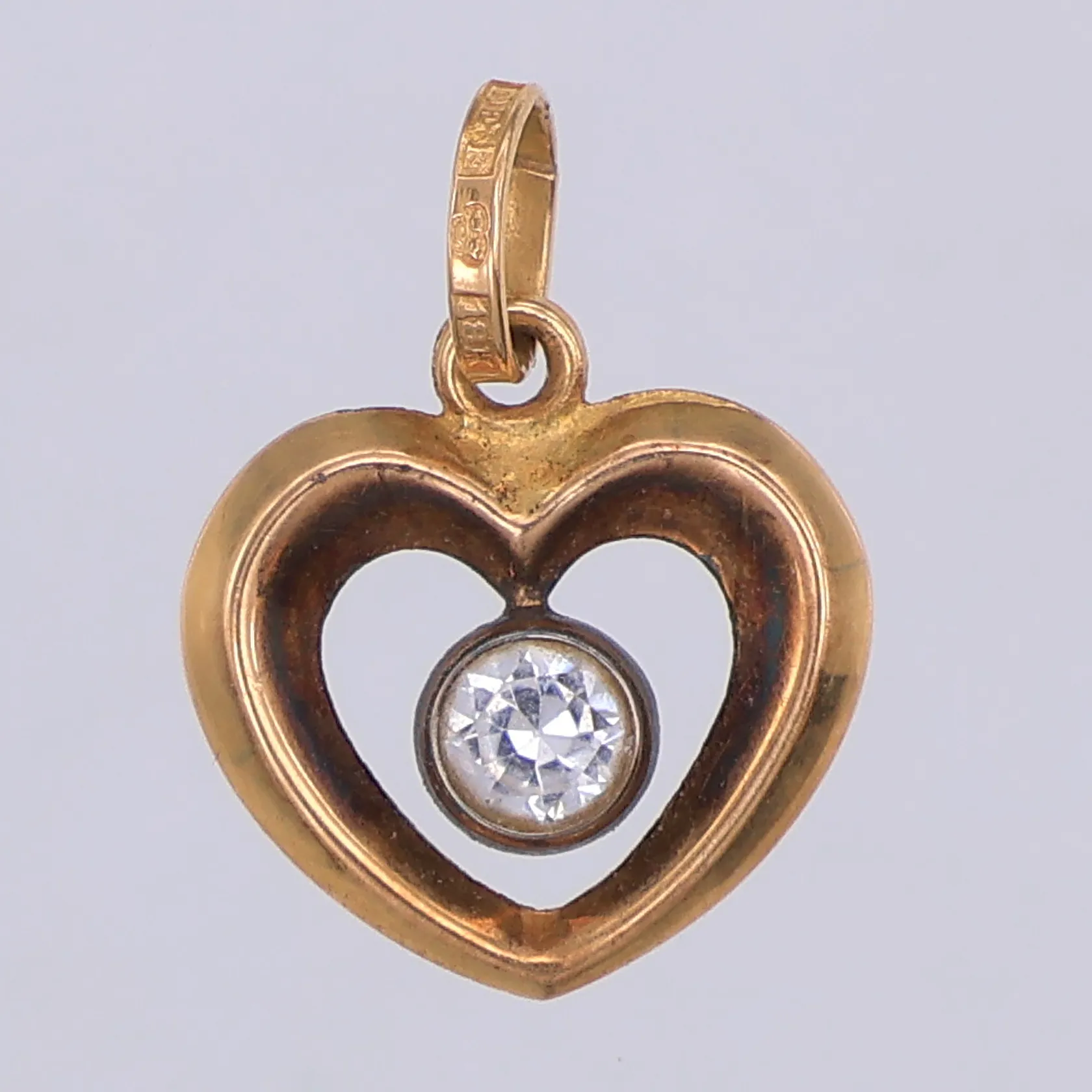 Hänge, hjärta, vit sten, 16mm, 18K Vikt: 1 g.