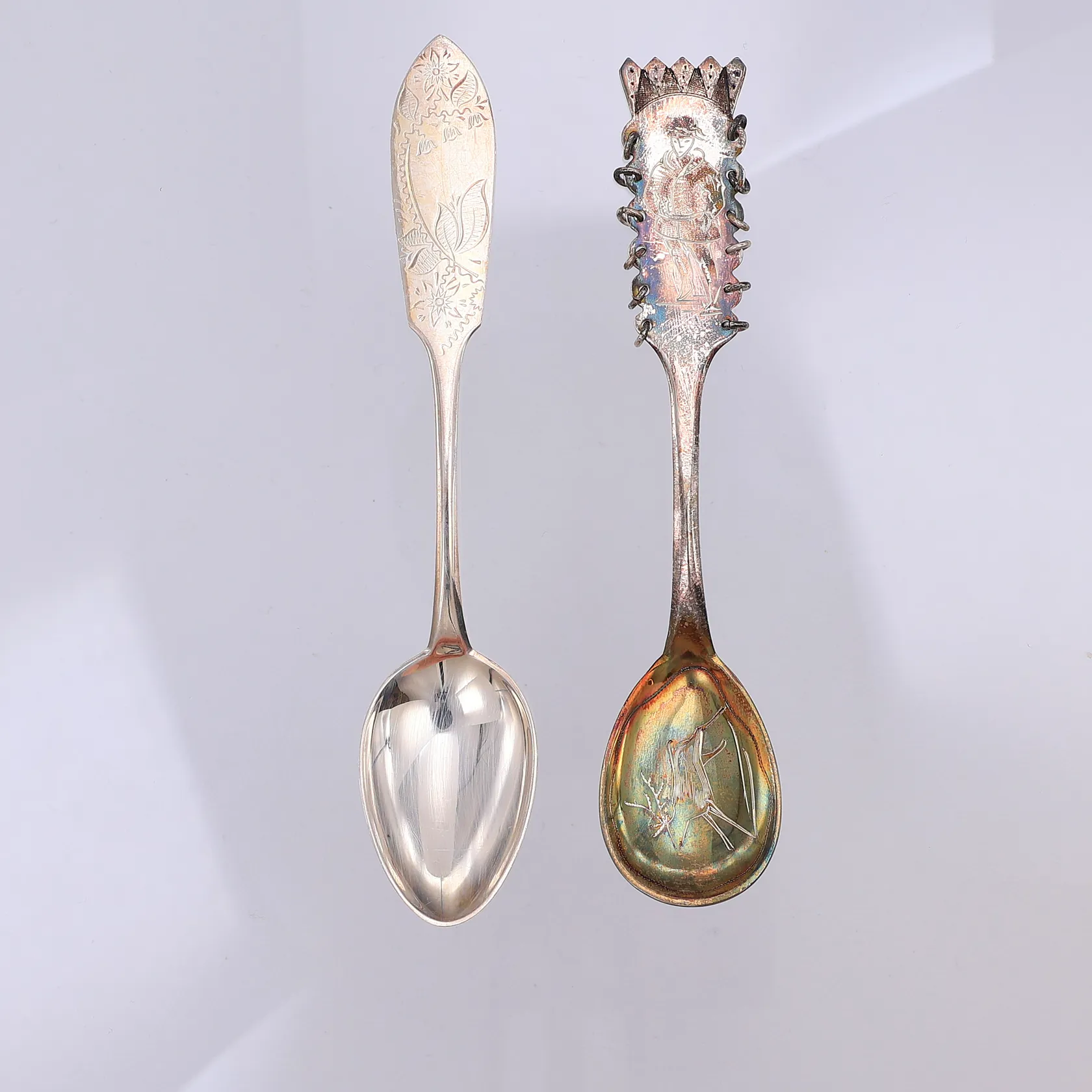 2 Kaffeskedar, udda modeller, 830/1000 silver Vikt: 27,9 g.