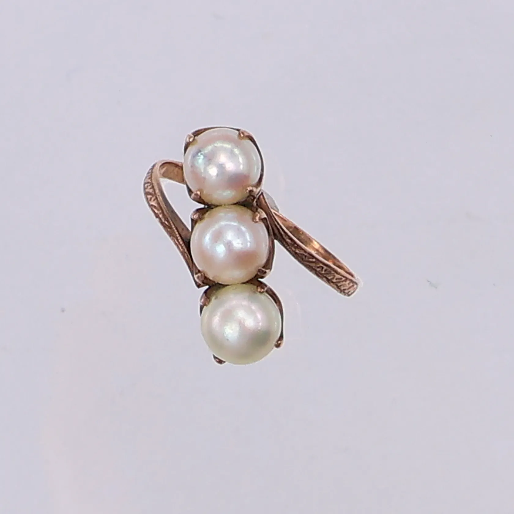 Ring, odlade saltvattenpärlor, stl 16½, 14K Vikt: 2,1 g.