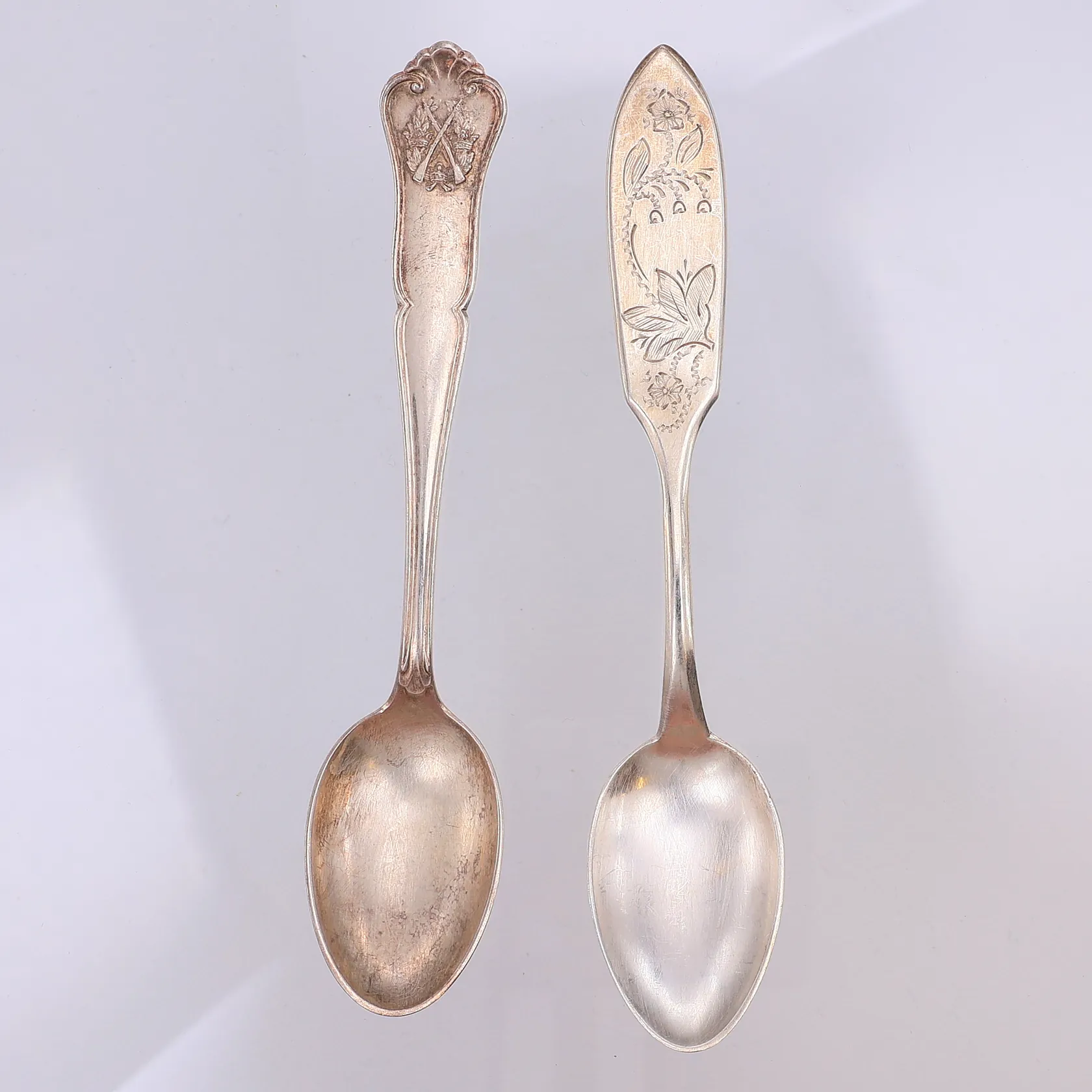 2 Kaffeskedar, udda modeller, 830/1000 silver Vikt: 25,9 g.