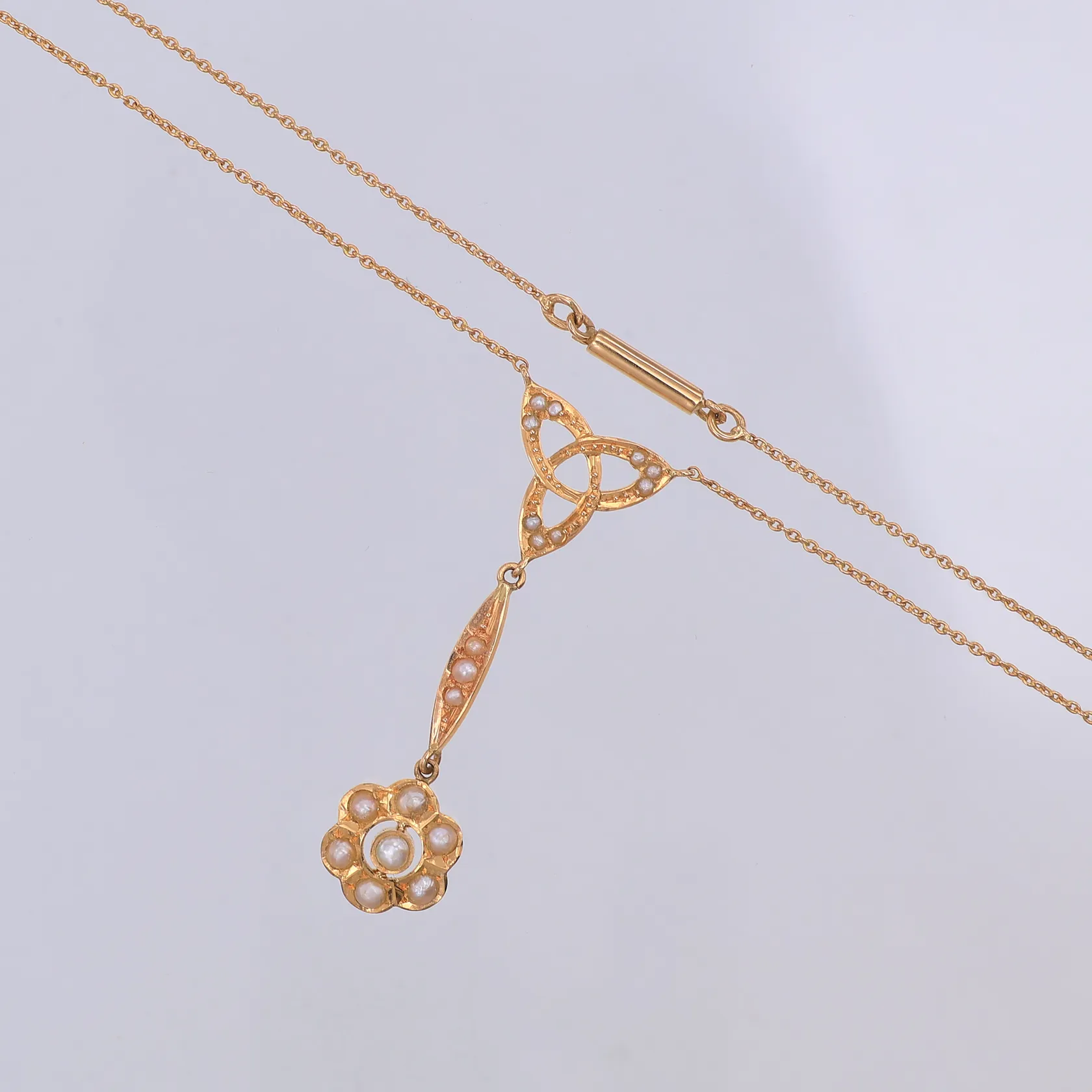 Collier, odlade saltvattenpärlor, 42,5cm, hängdel 45mm, Dahlgren & co år 1920, 18K Vikt: 5 g.