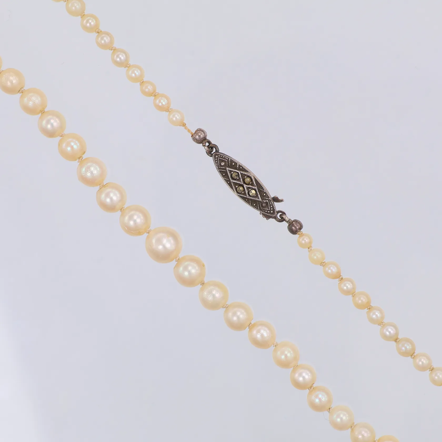 Pärlcollier, doserad, Ø3-7mm, 50cm, en del slitna pärlor, lås med pyriter, 835/1000 silver