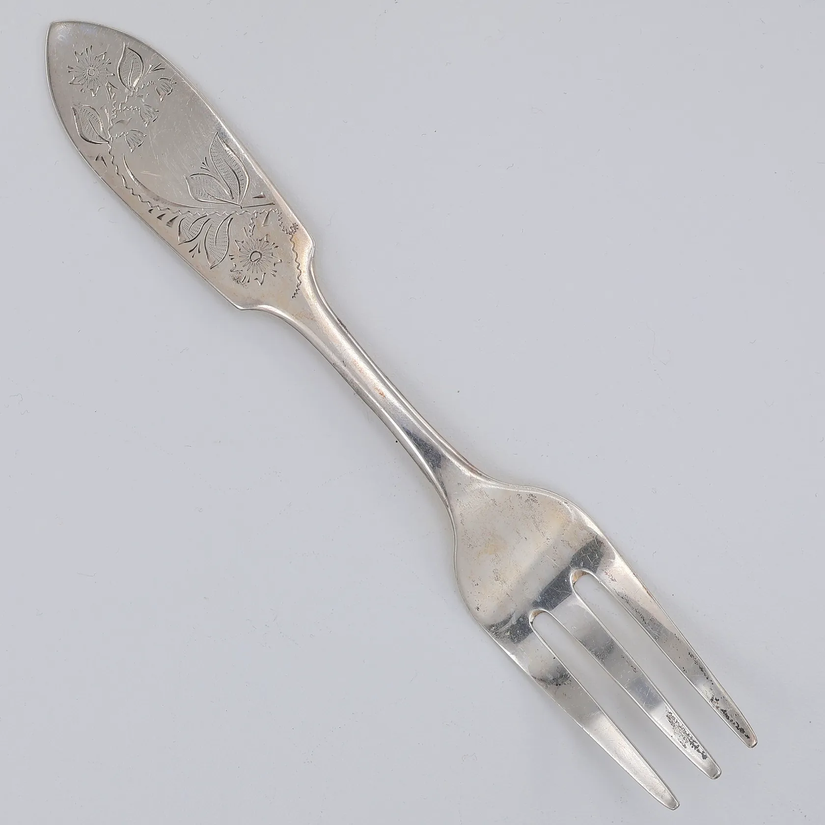 Serveringsgaffel, modell Tornedal, 19cm, Kemppainen år 1968, 813/1000 silver Vikt: 46,2 g.