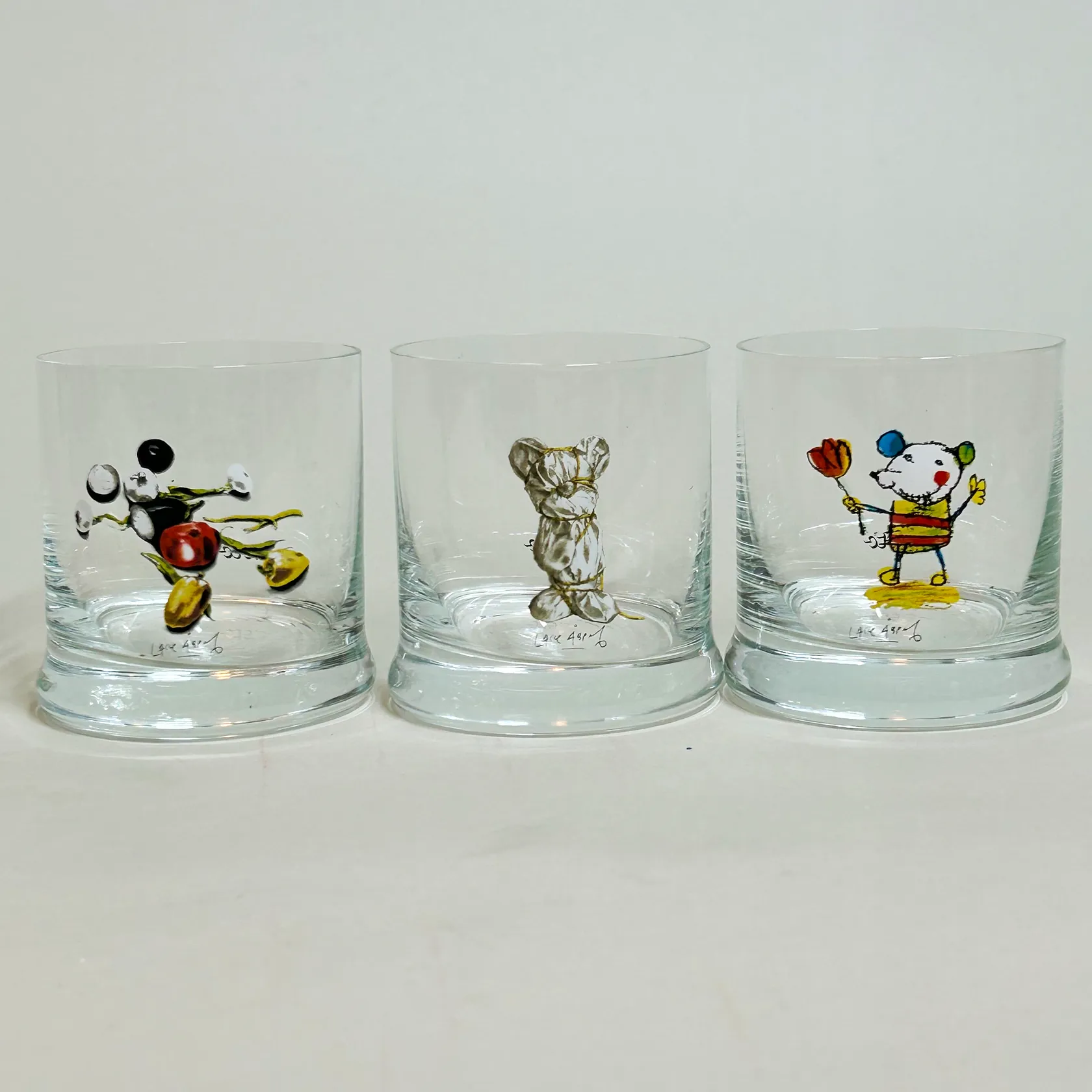 Tre Whiskeyglas Lasse Åberg, höjd 8cm, 19cl Skickas med postpaket.